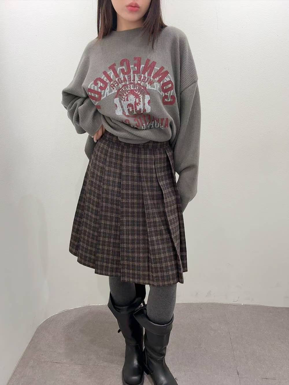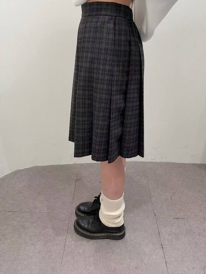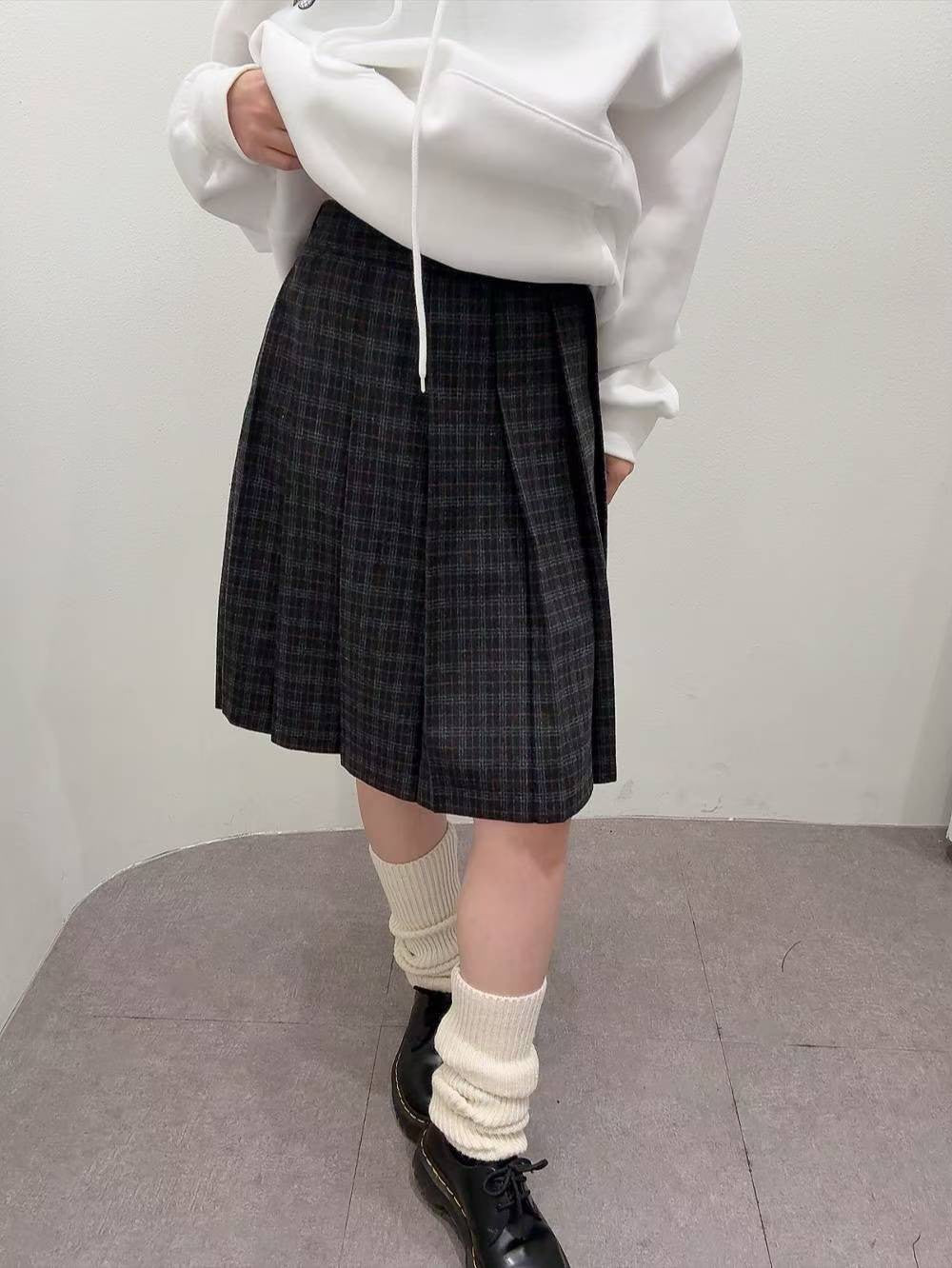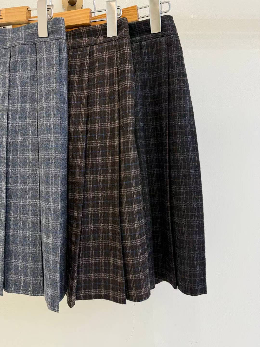12A118 毛呢格紋百褶五分裙(後鬆緊)