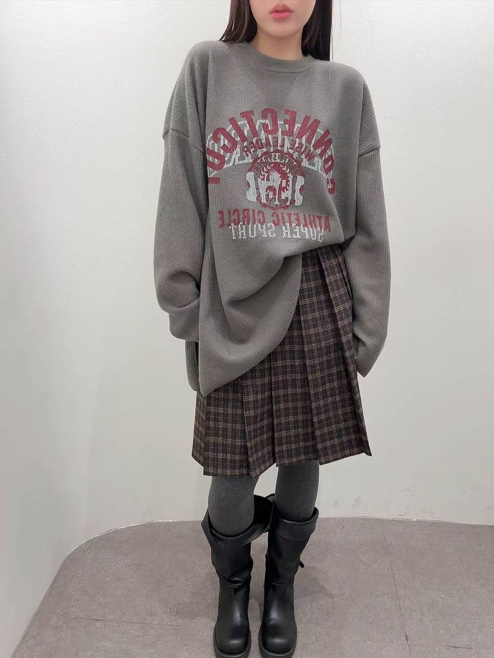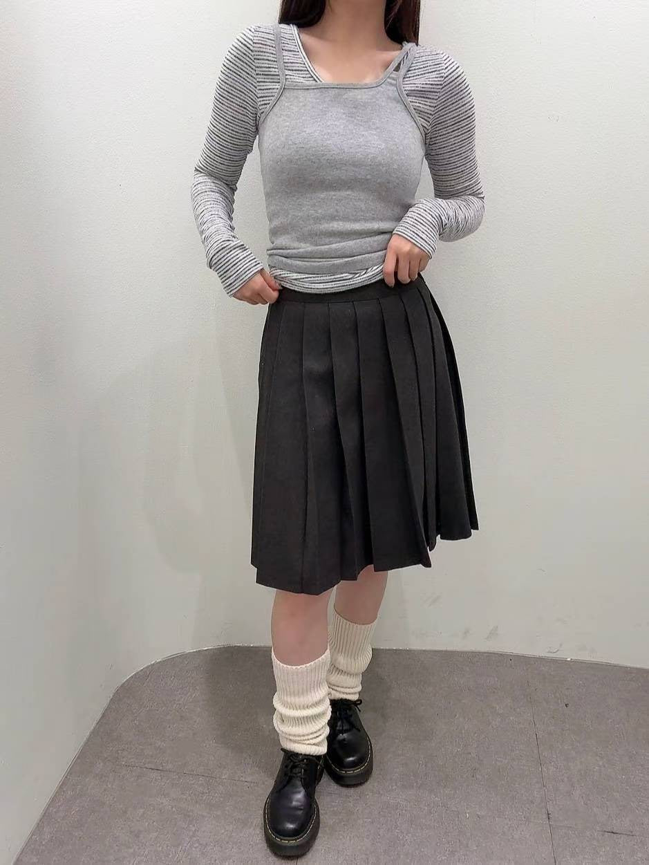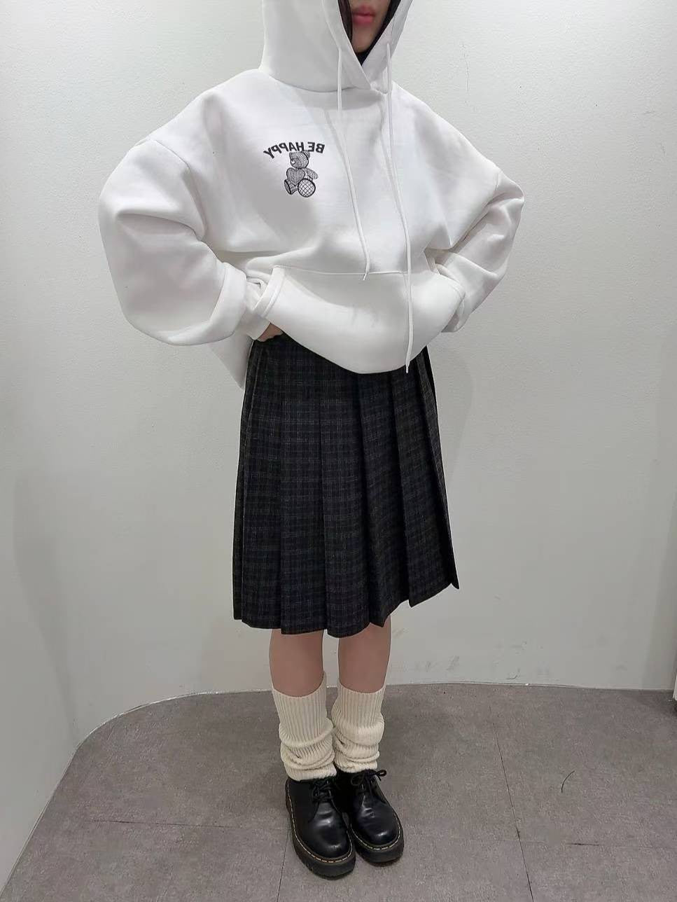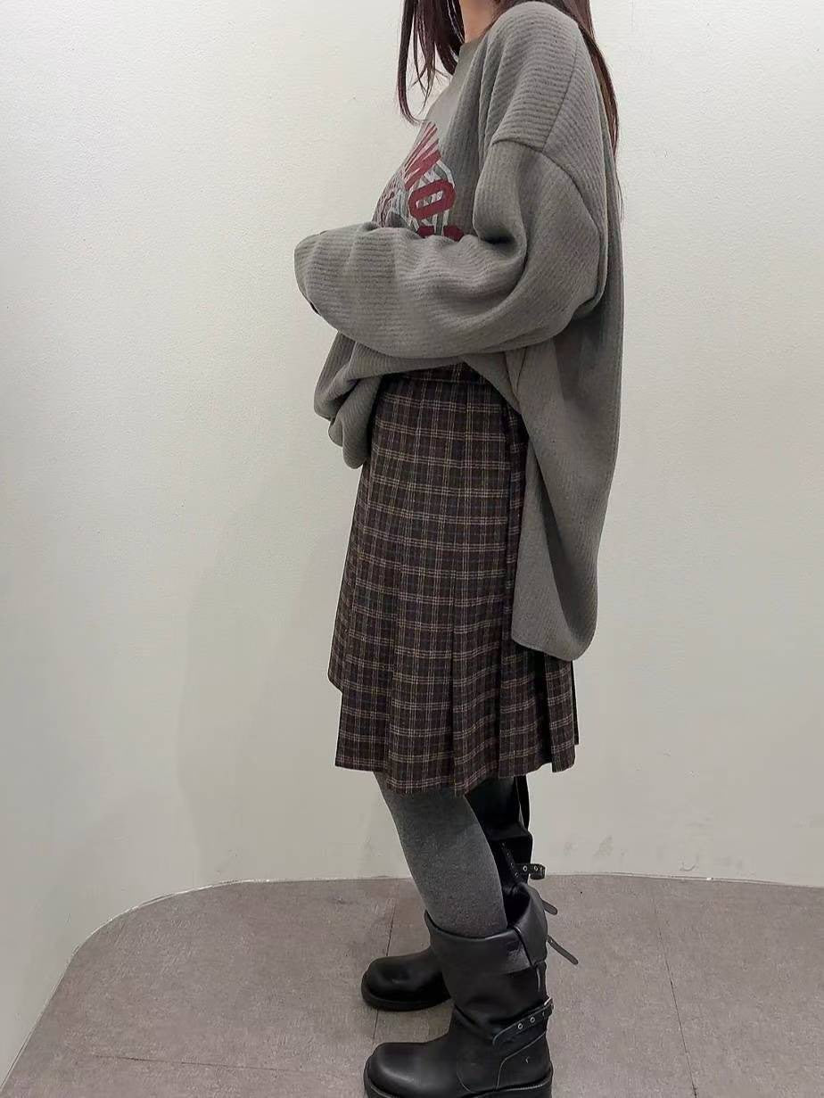 12A118 毛呢格紋百褶五分裙(後鬆緊)