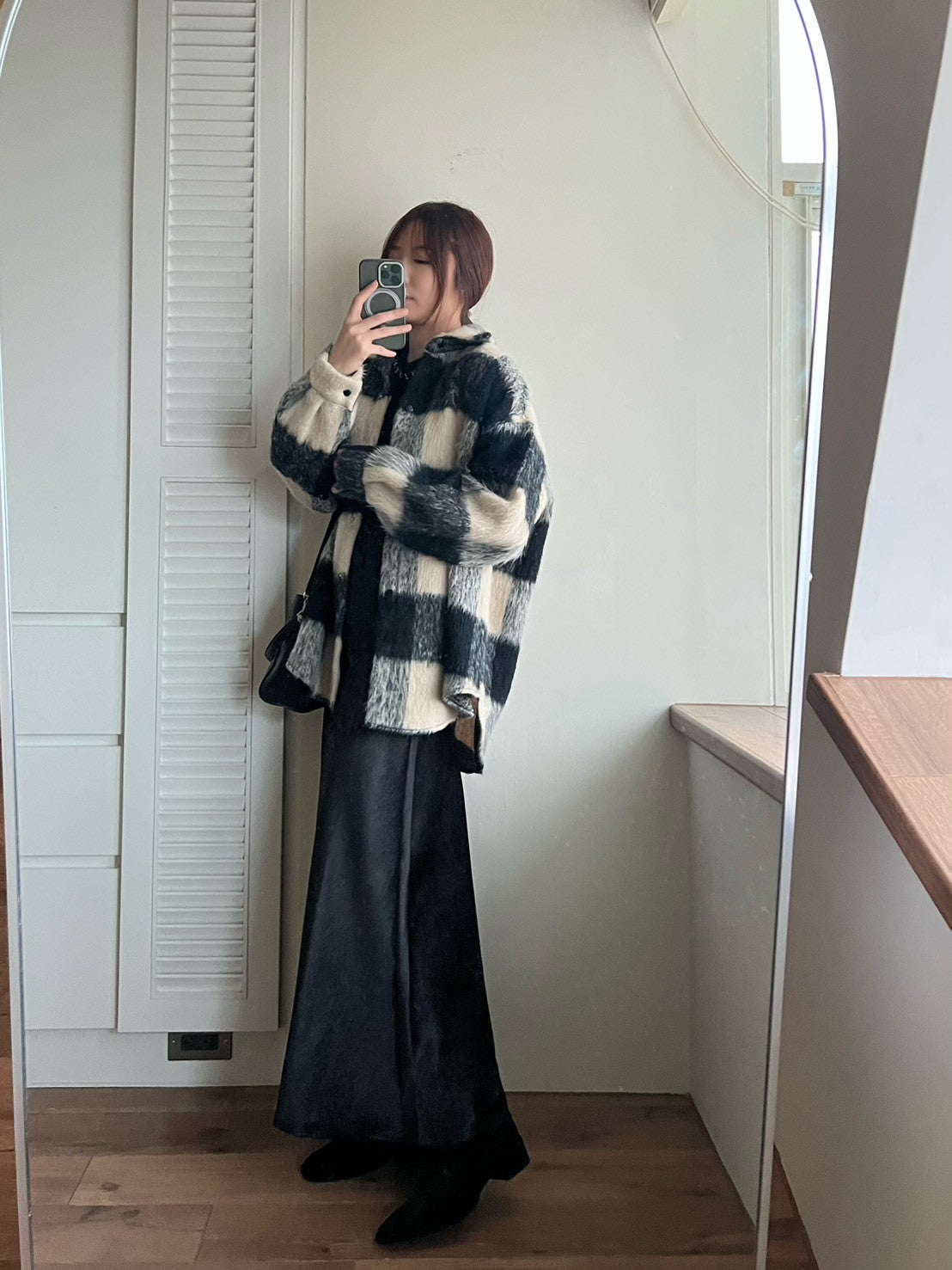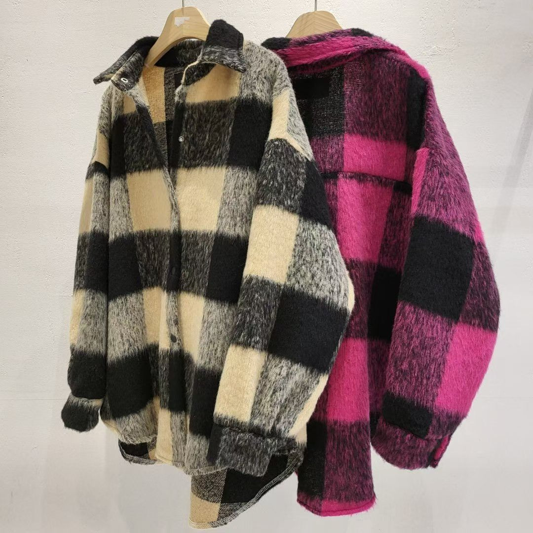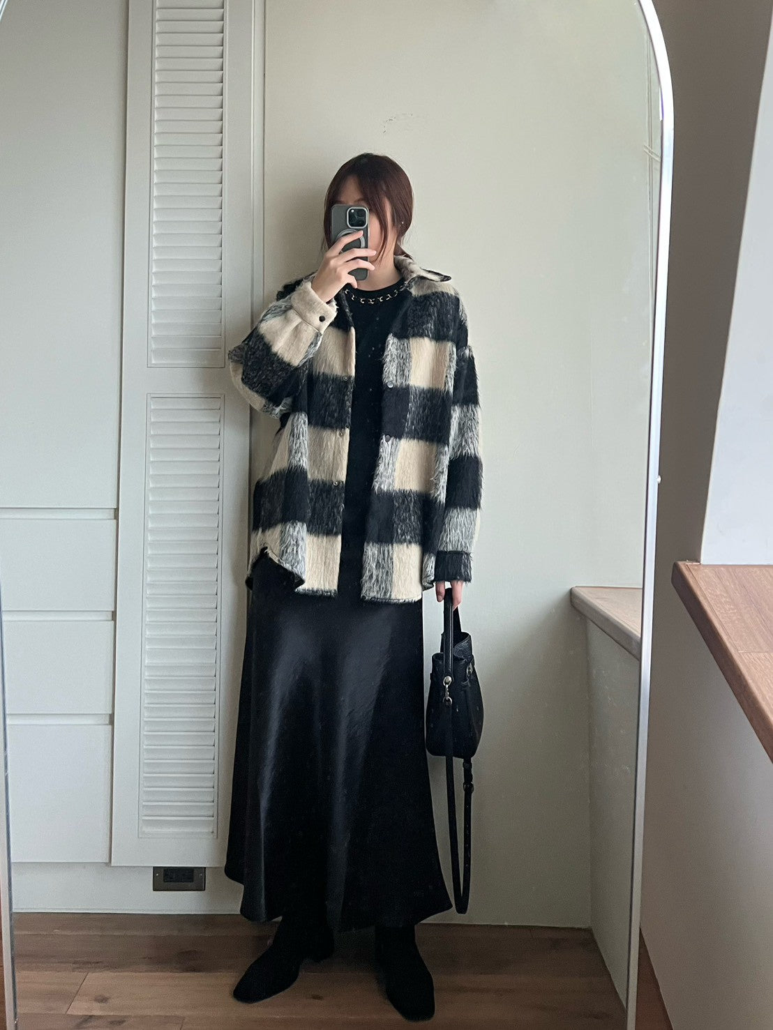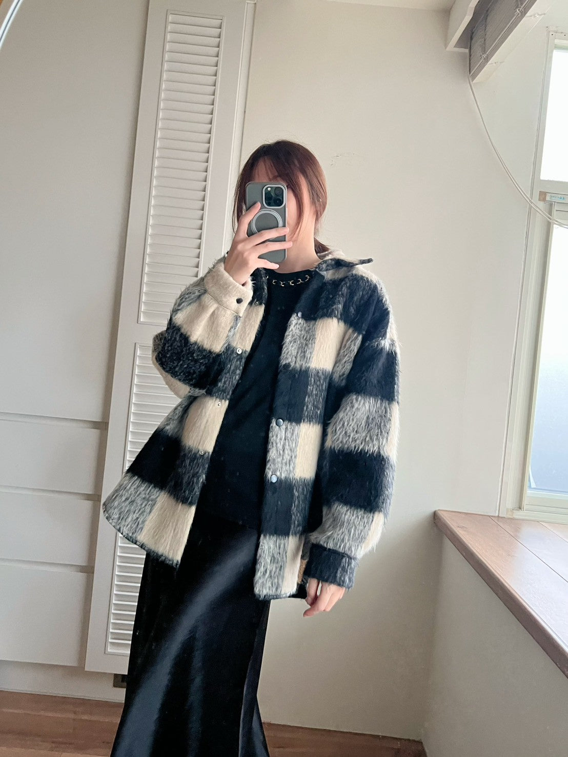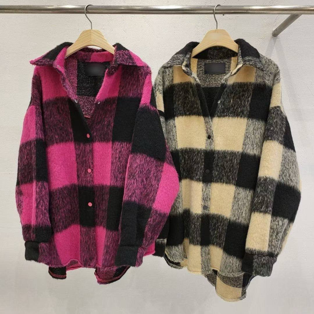 12A203 毛料格紋長版襯衫外套