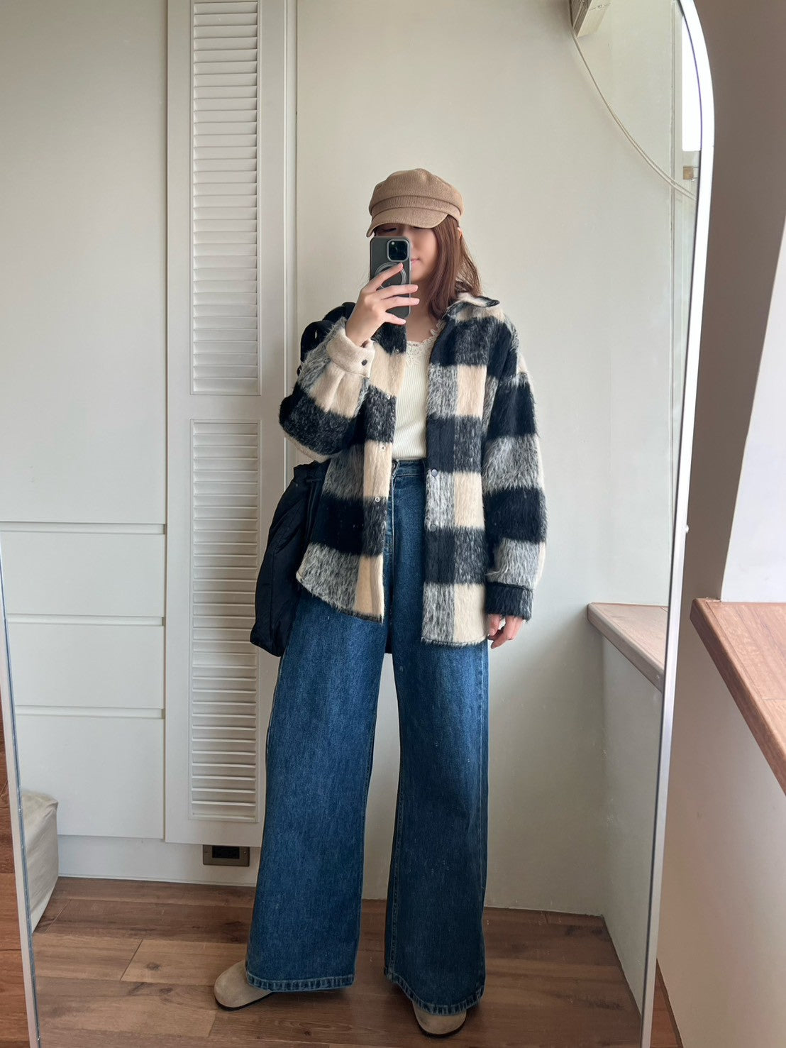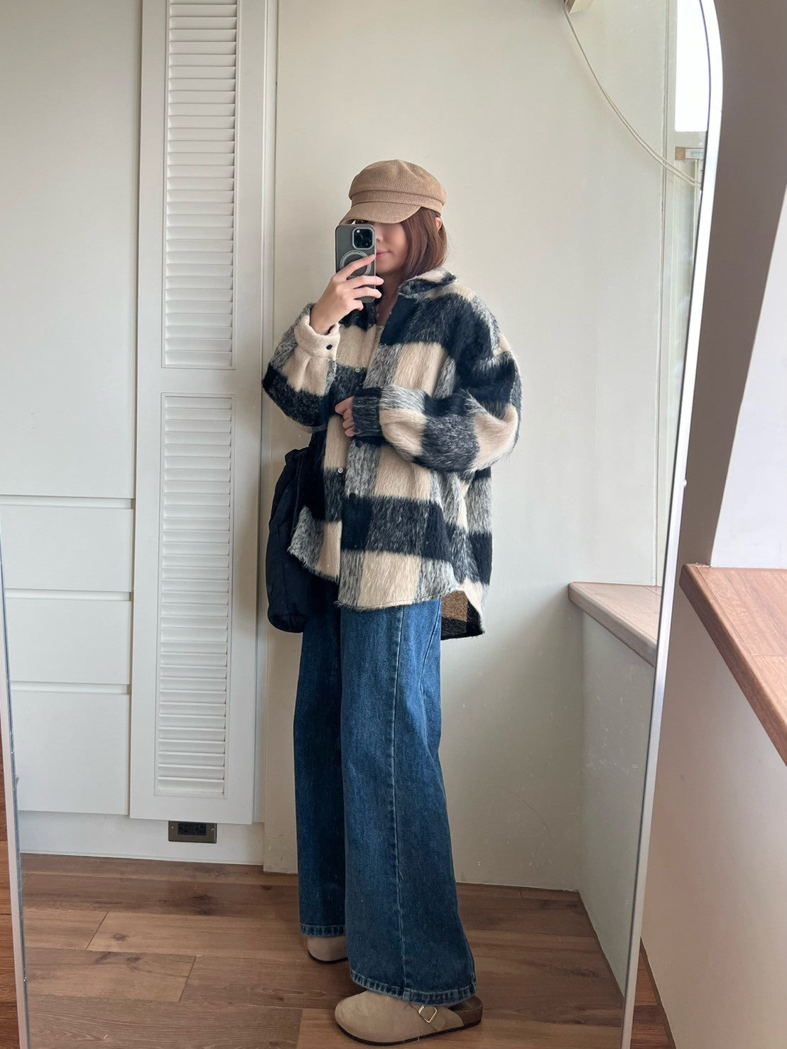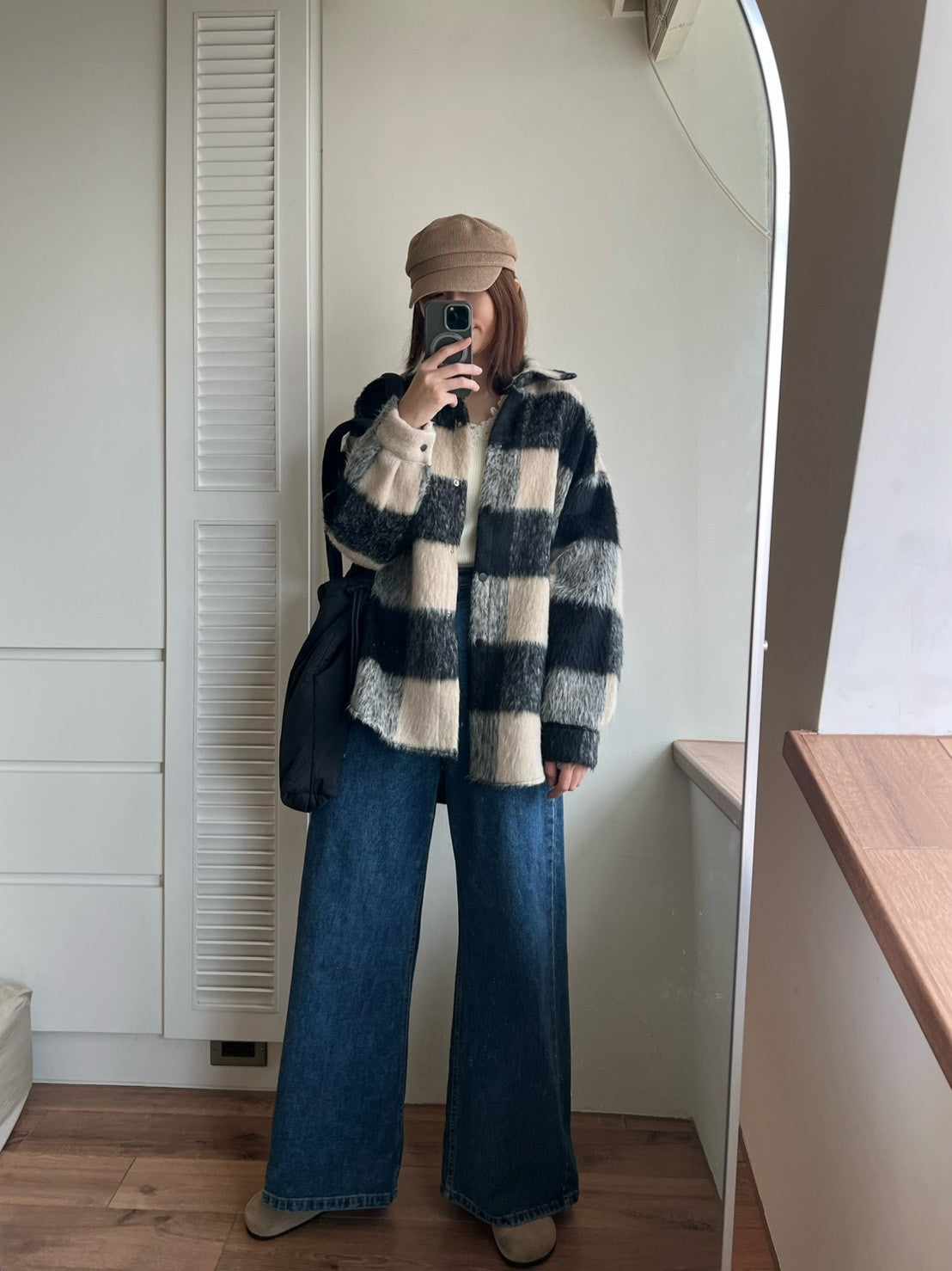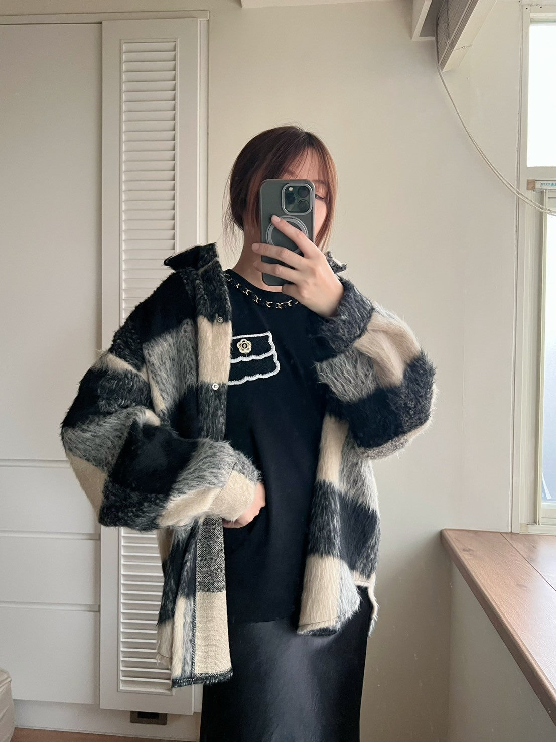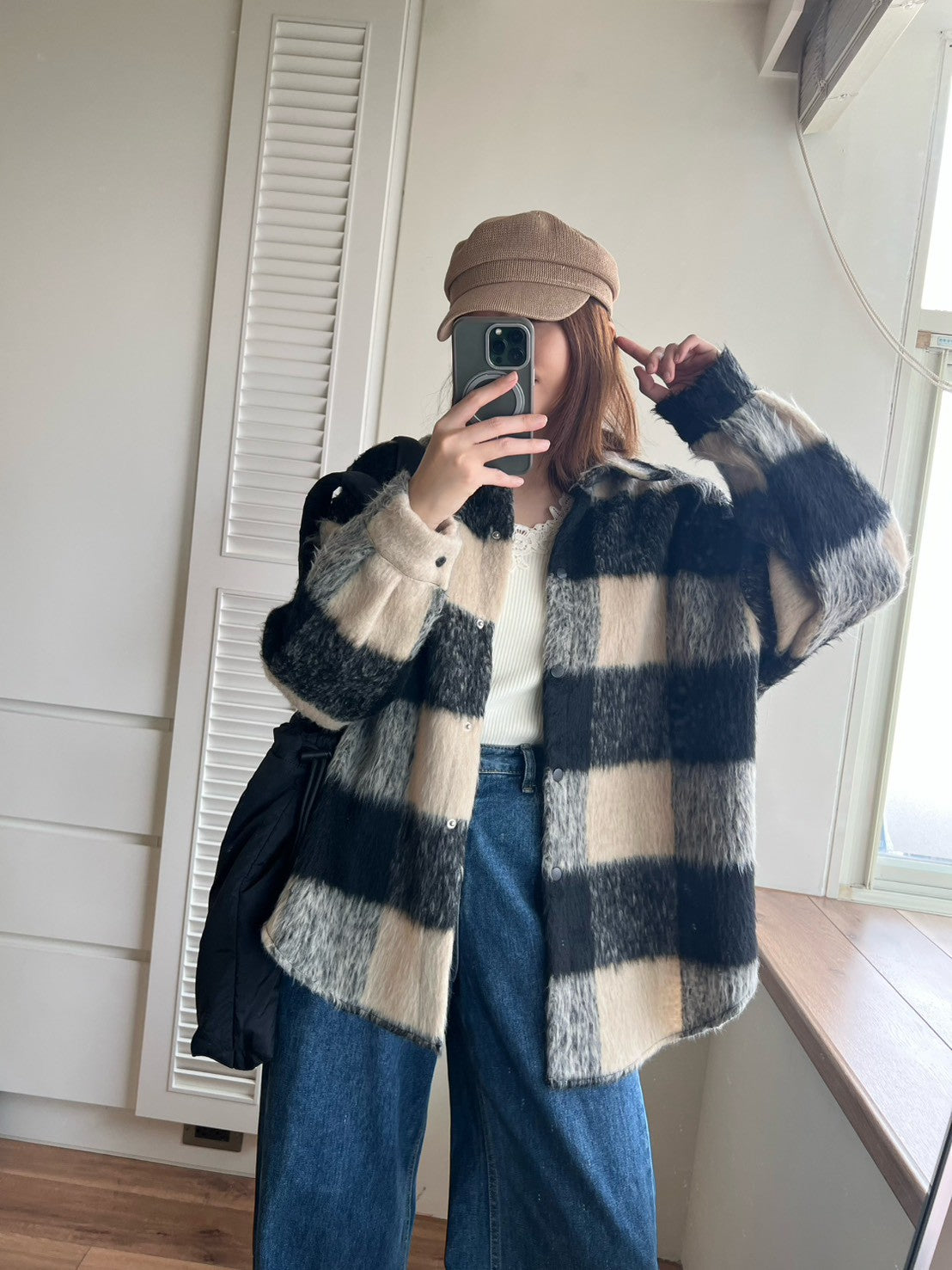 12A203 毛料格紋長版襯衫外套