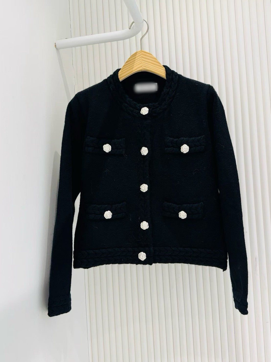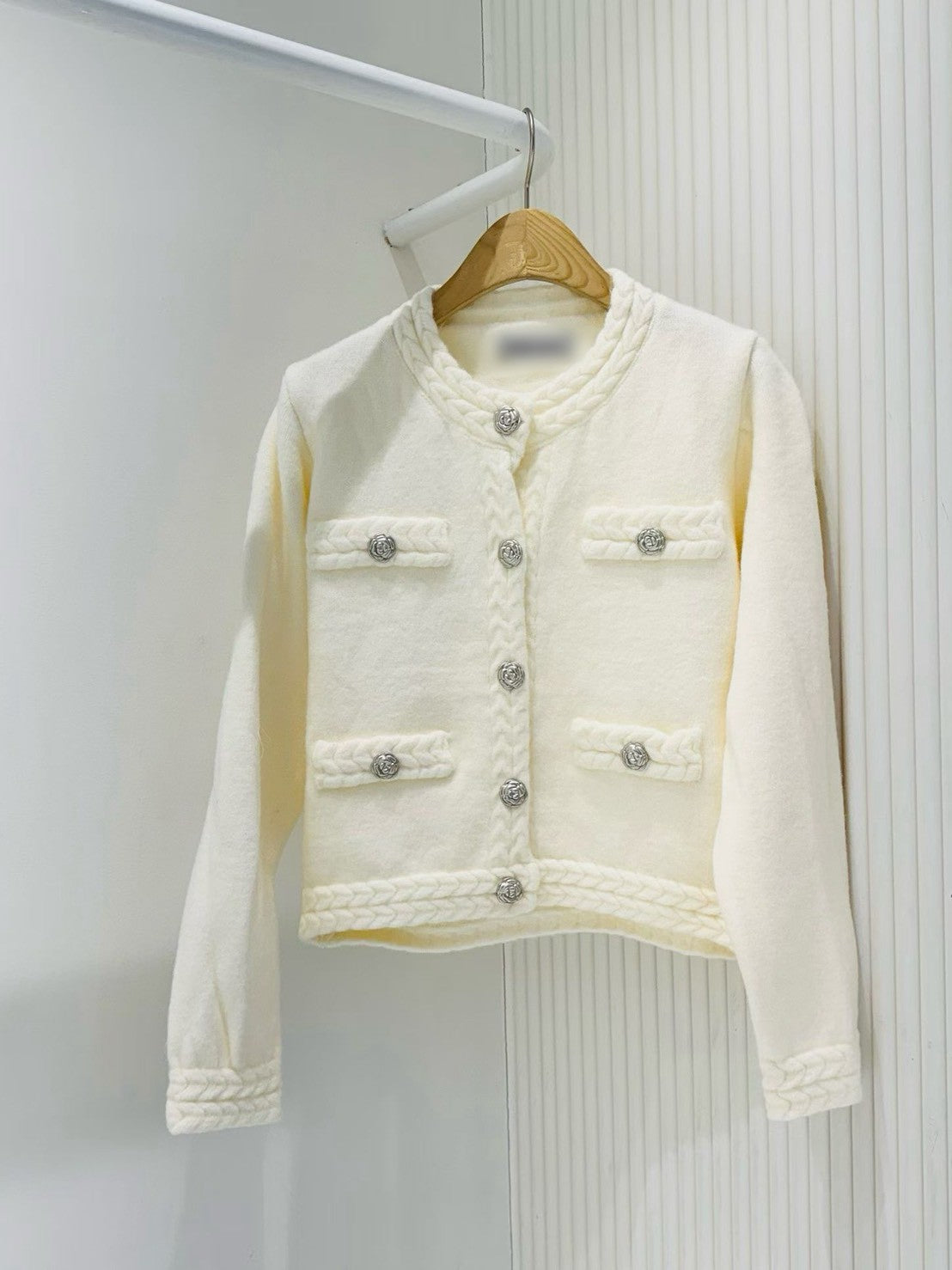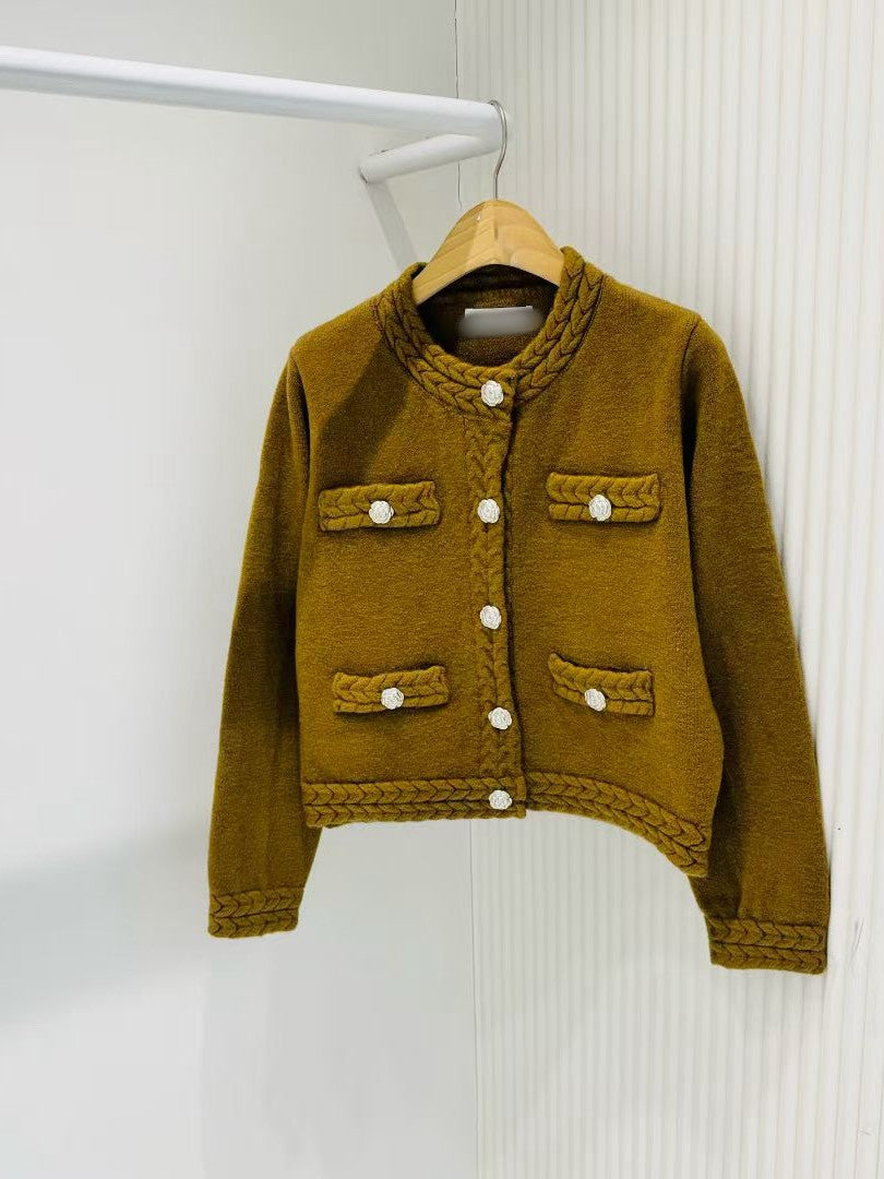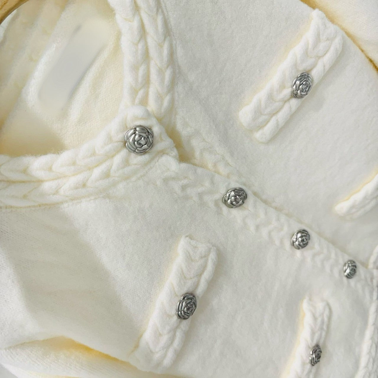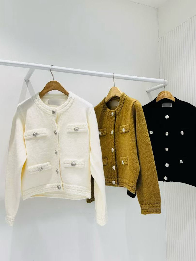 12B115 麻花編山茶花扣針織外套