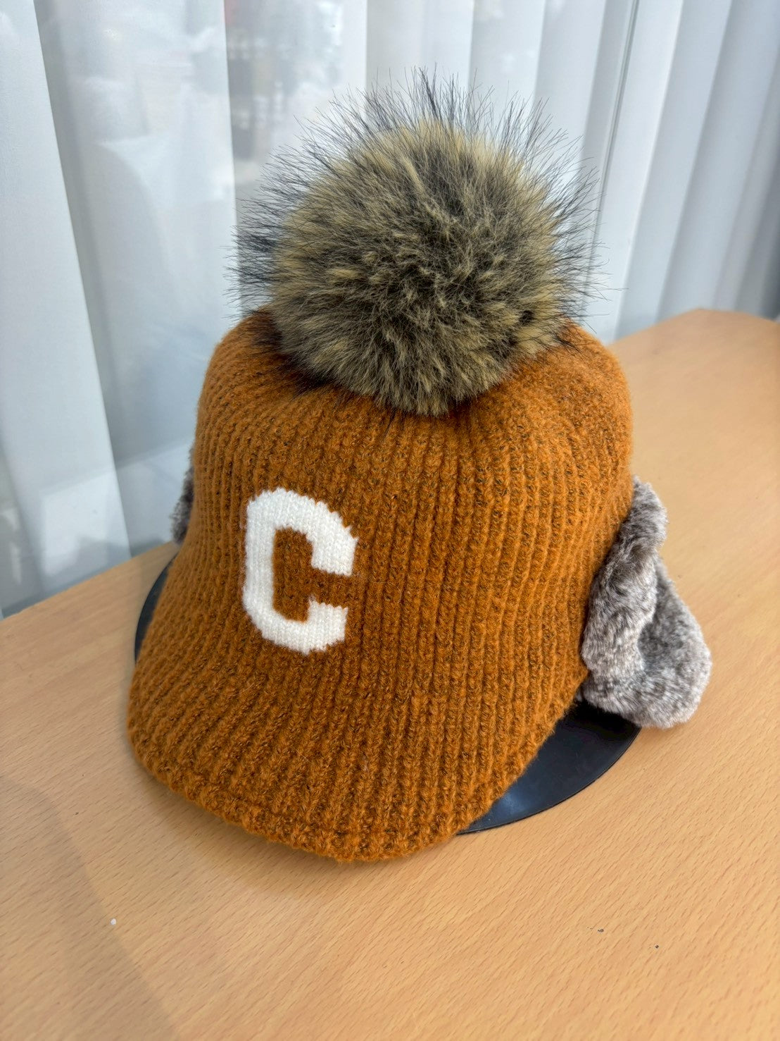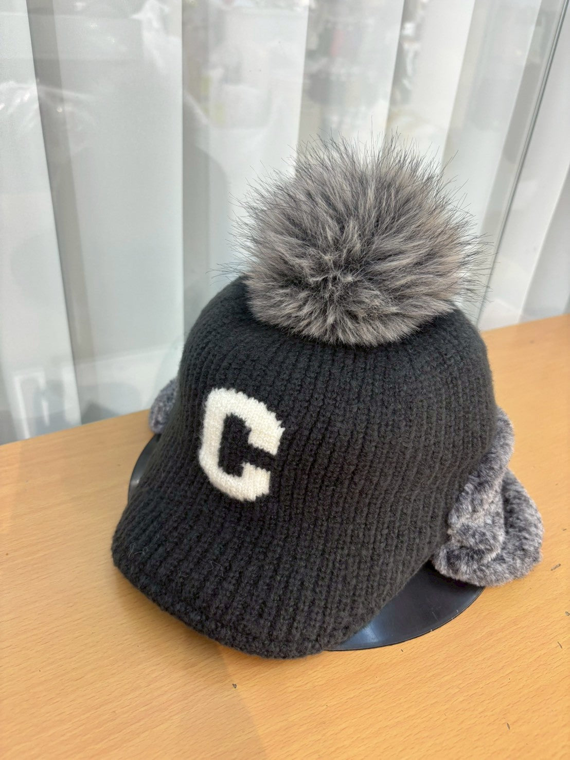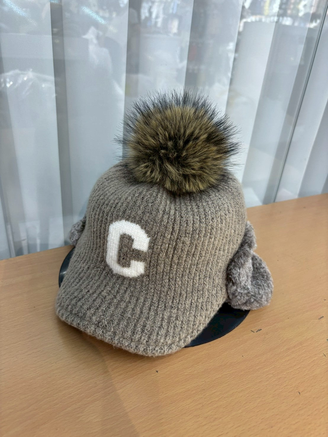 12C204 遮耳毛球C字針織棒球帽