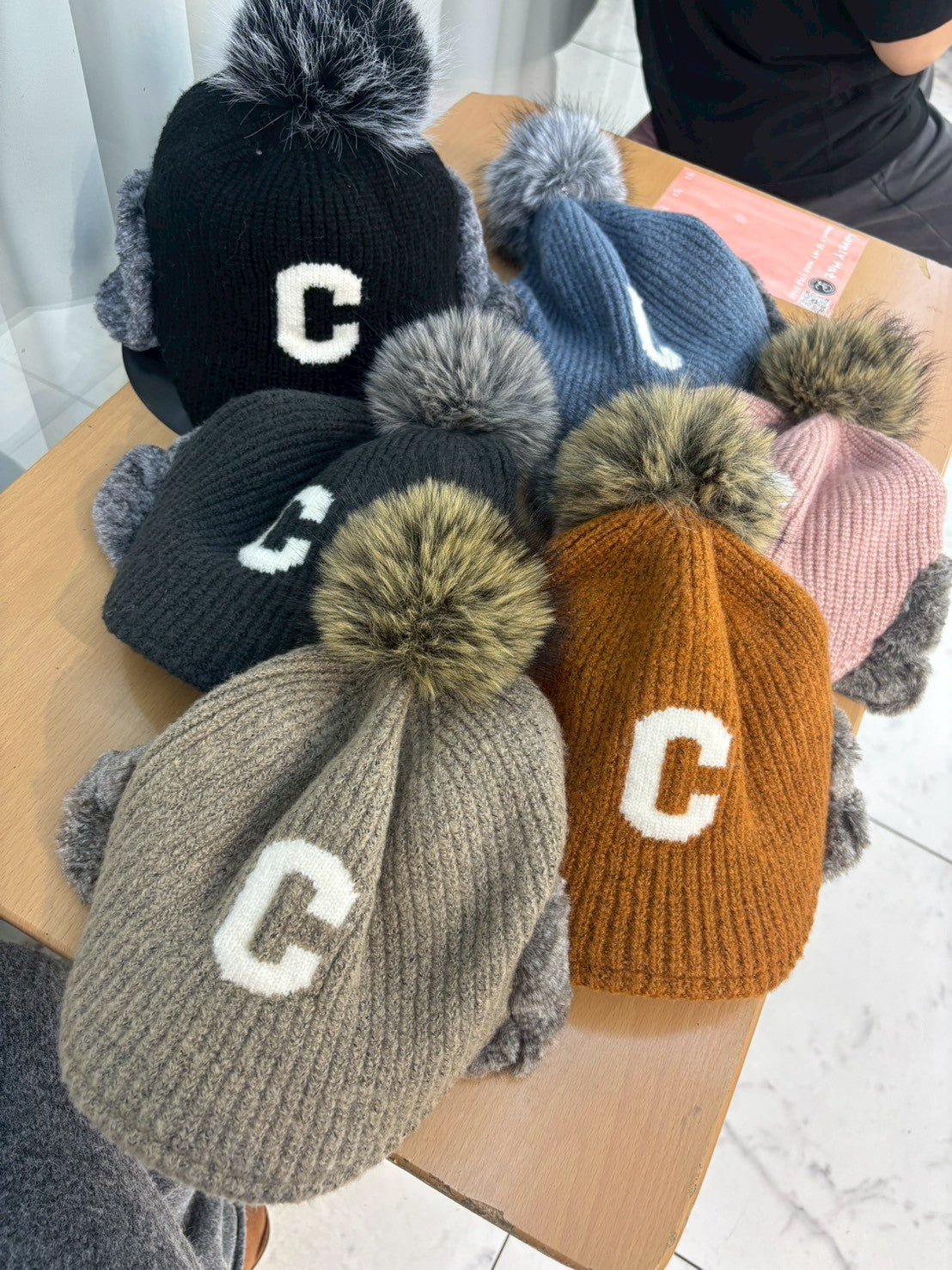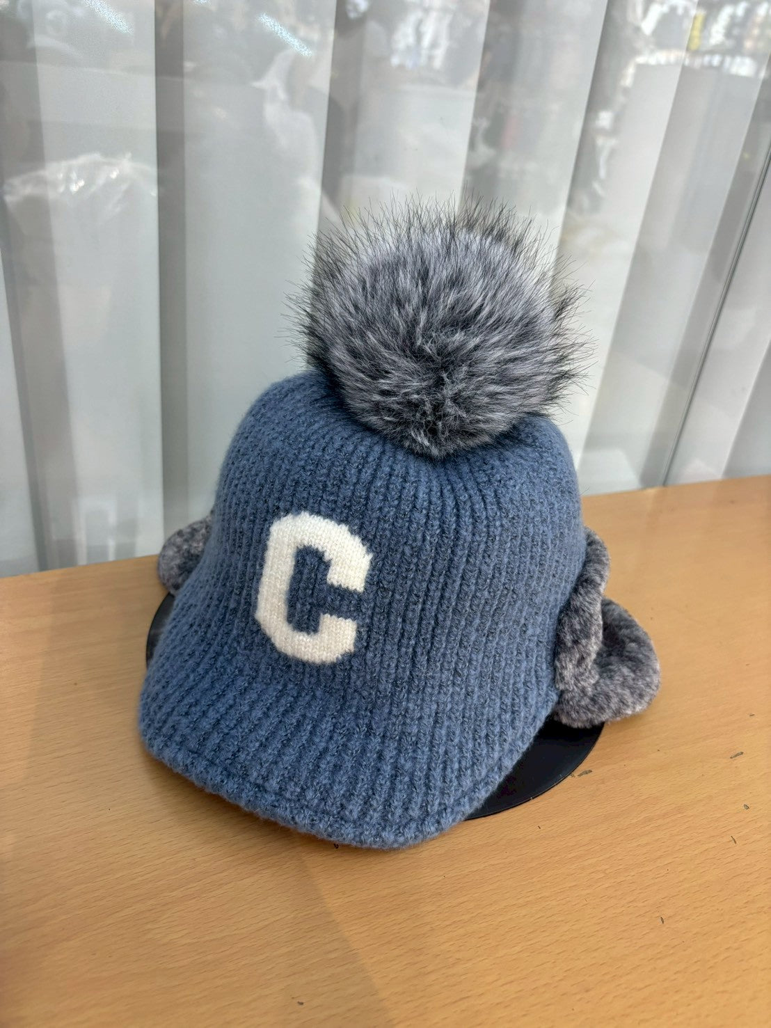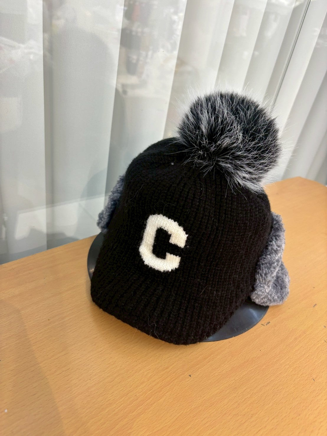 12C204 遮耳毛球C字針織棒球帽