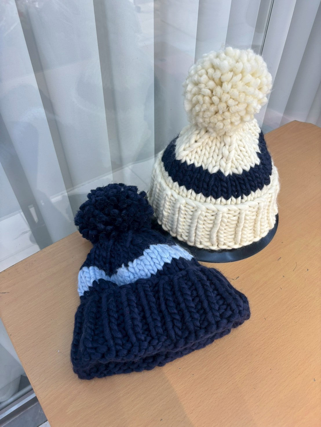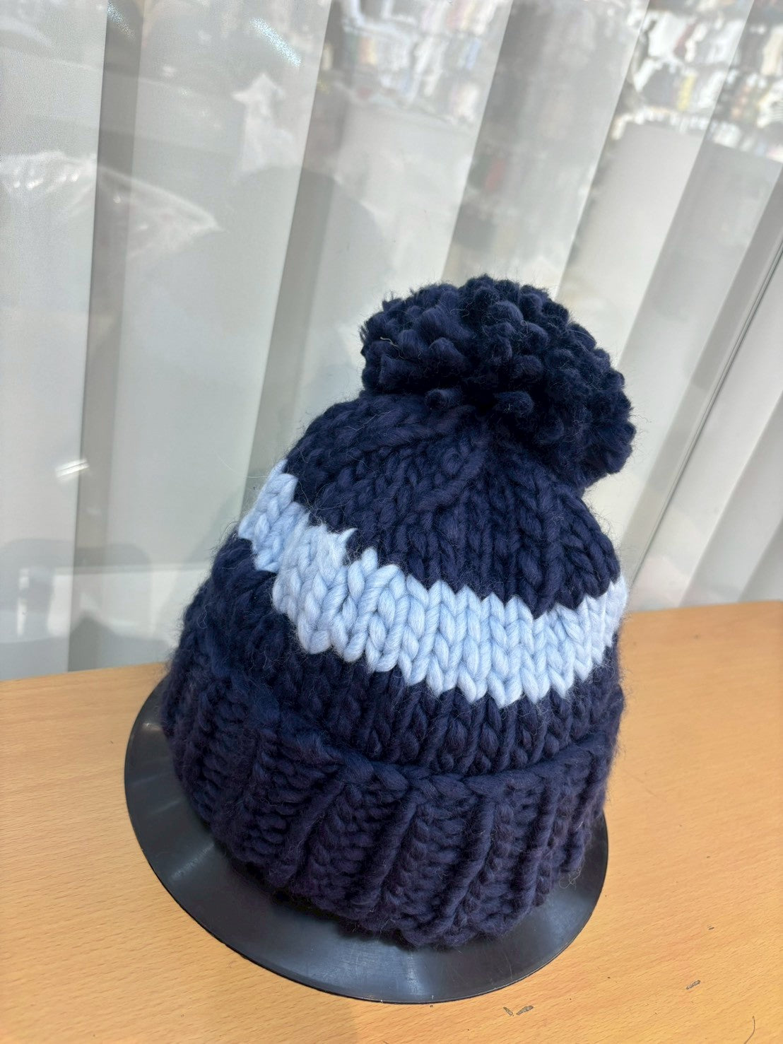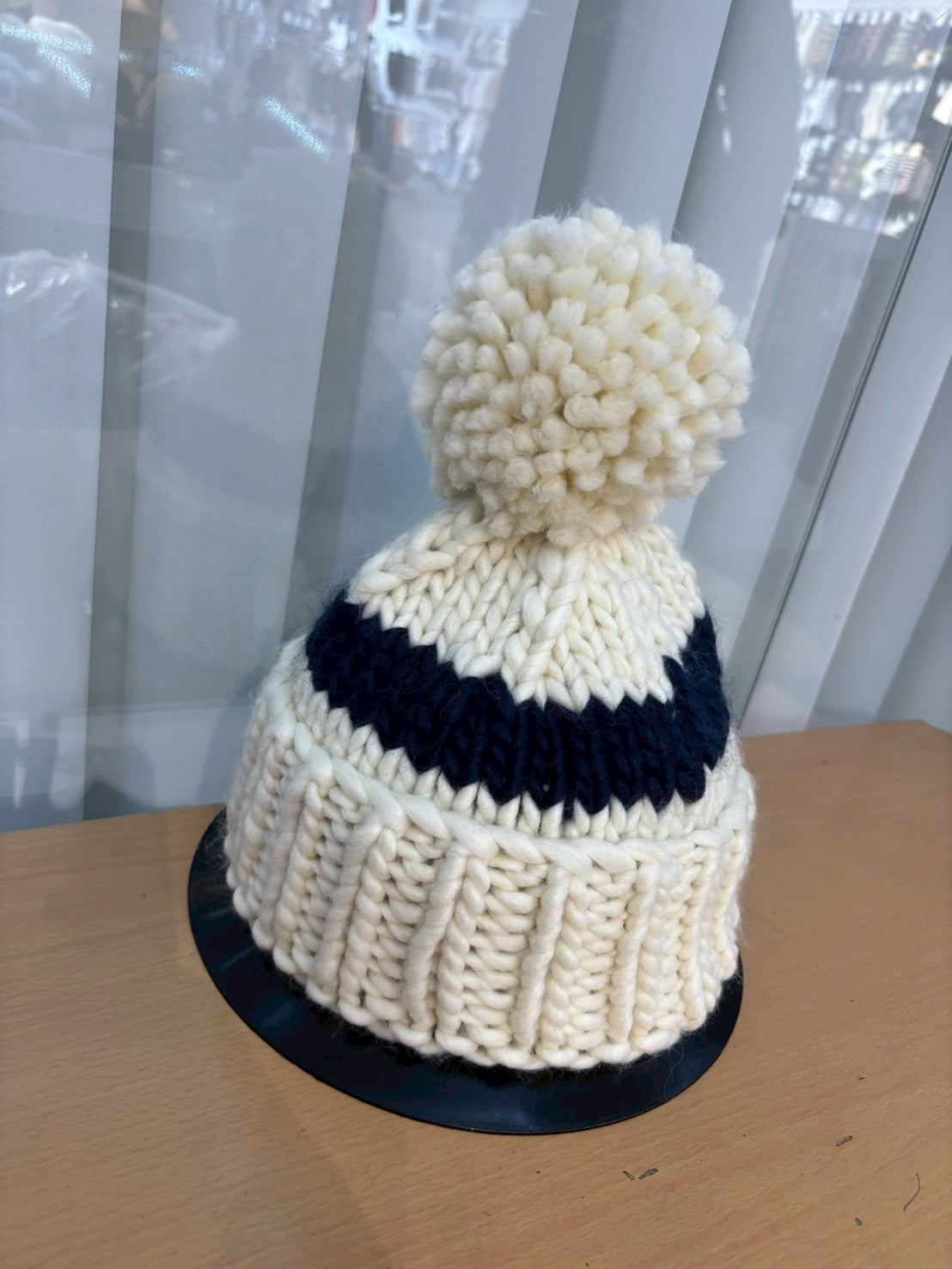 12C210 線條粗毛線毛球帽