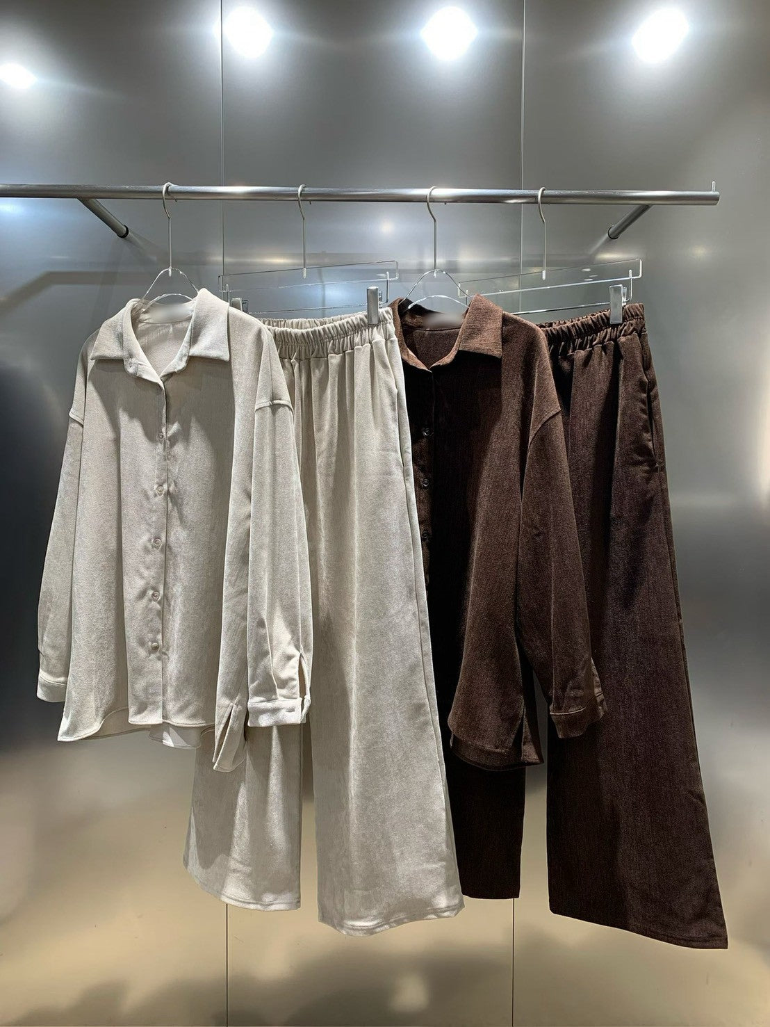 12C305 秋冬款挺料鬆緊腰長寬褲