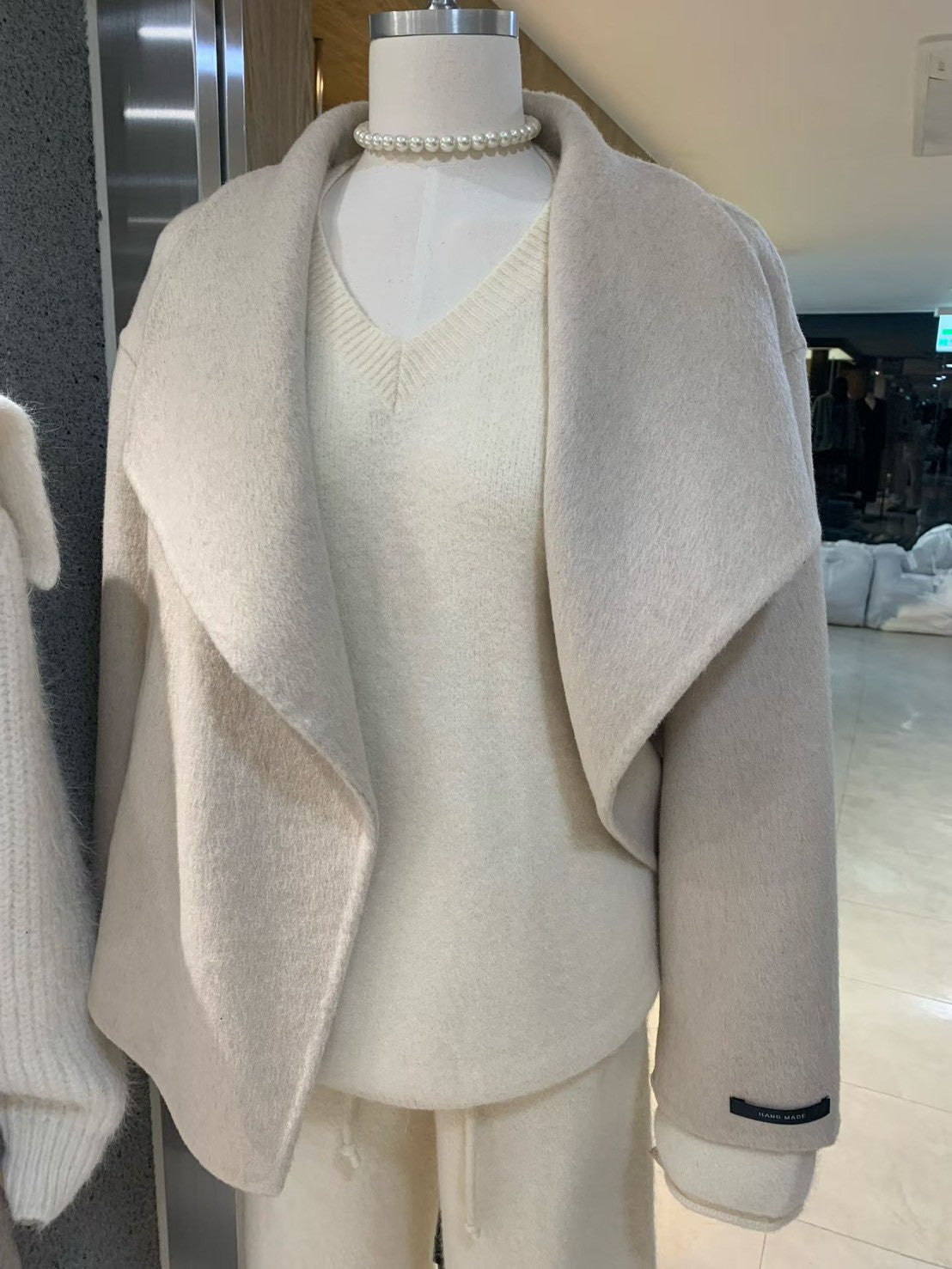 12C308 翻領羊絨手工短大衣(100%羊絨)