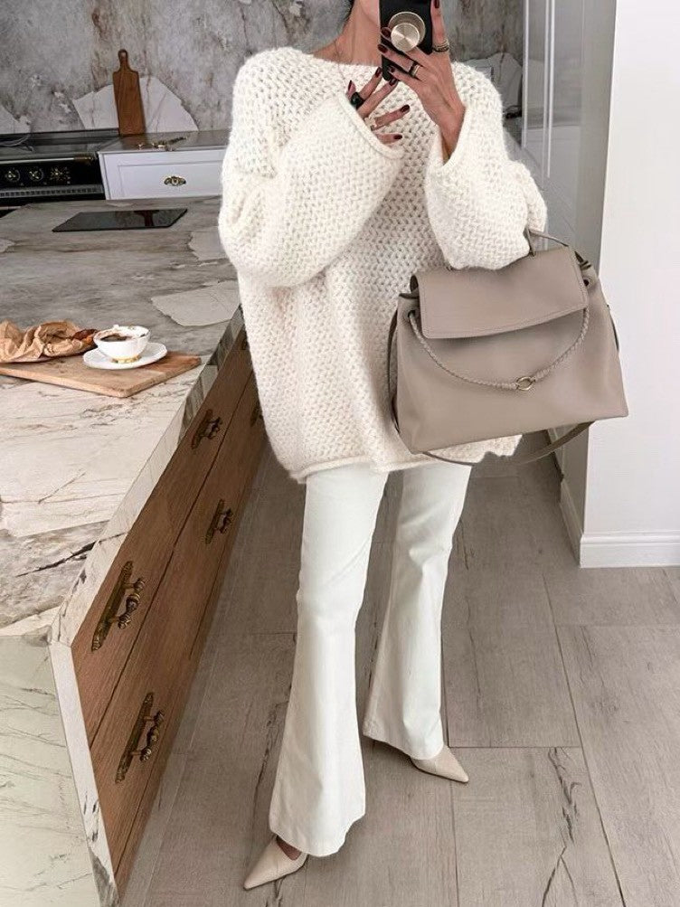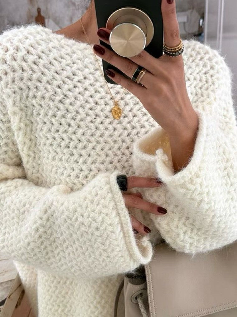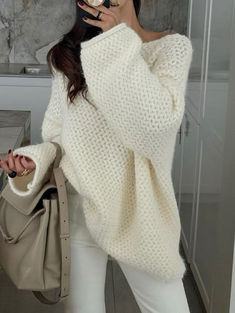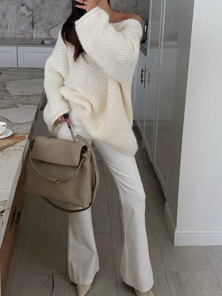 12C309 一字領鬆弛感毛衣(羊毛10%)