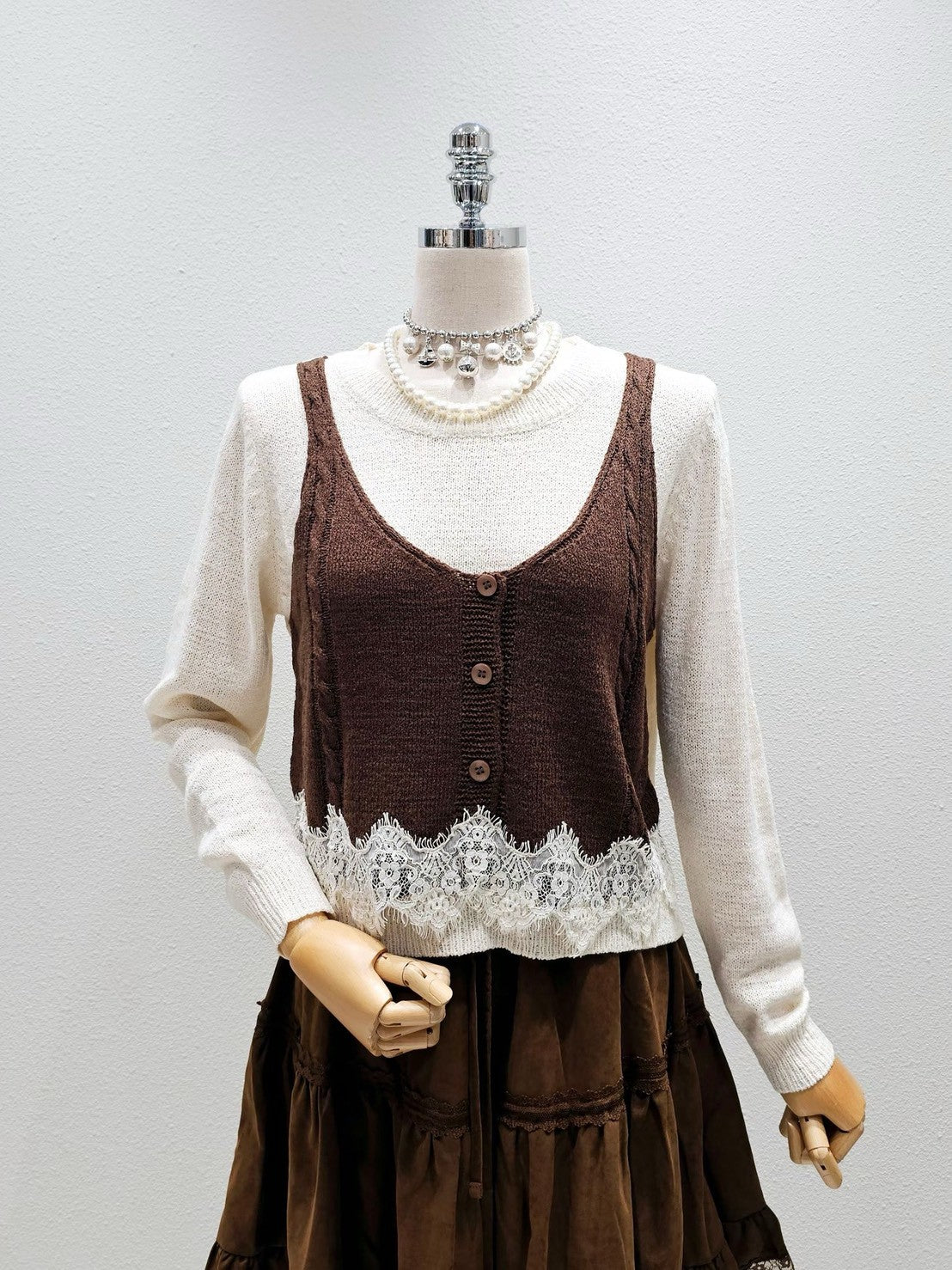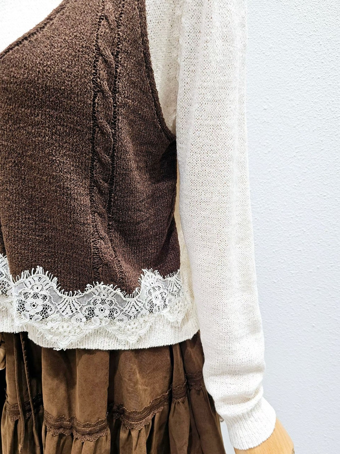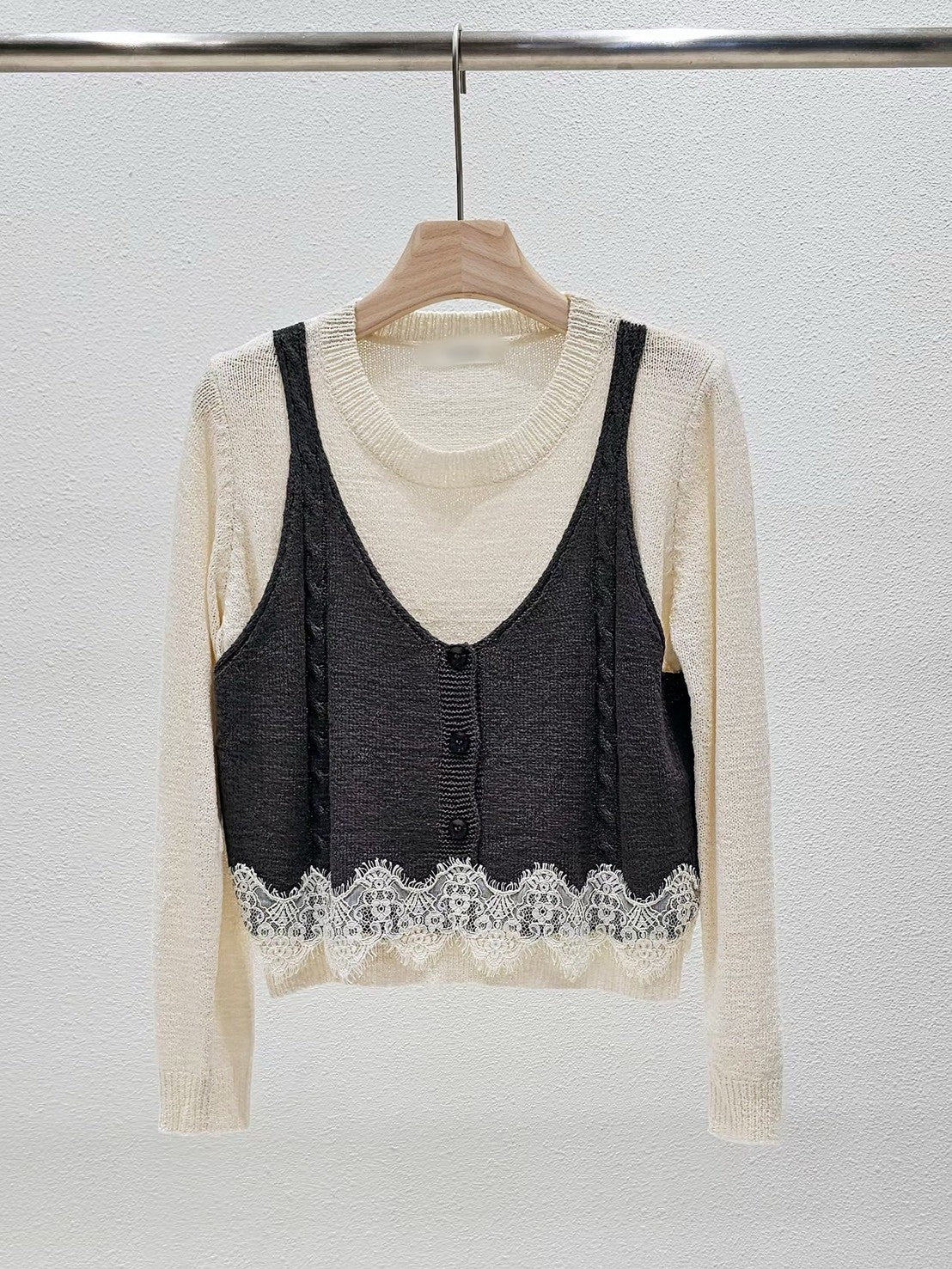 1A101 假兩件蕾絲下擺背心毛衣