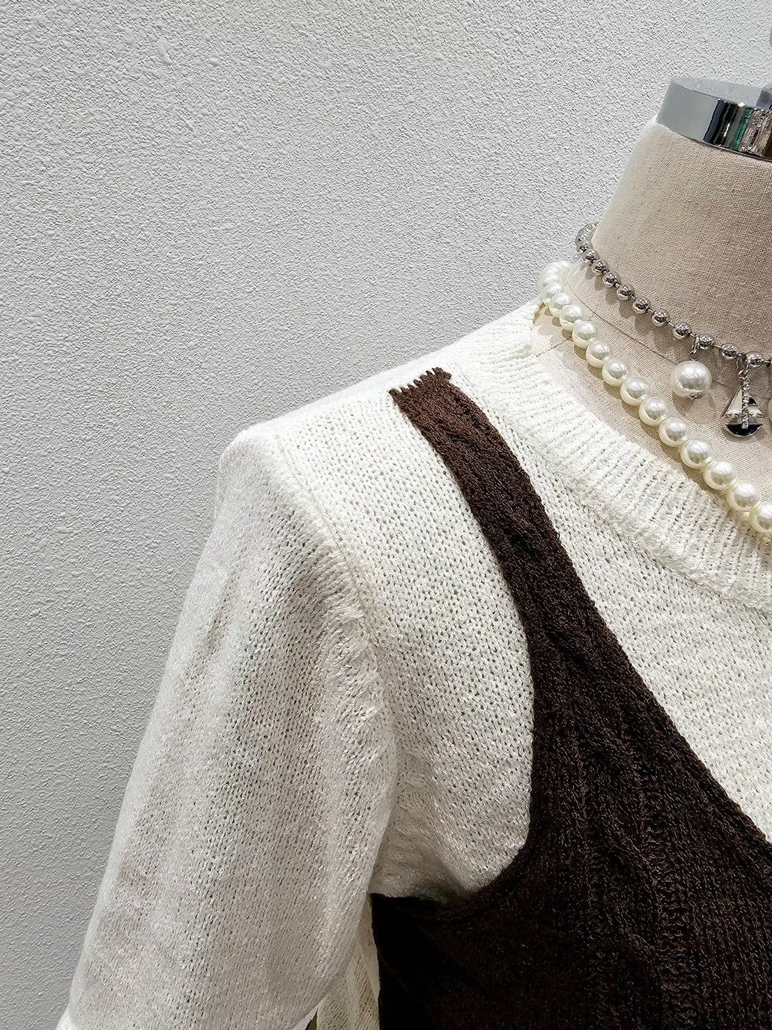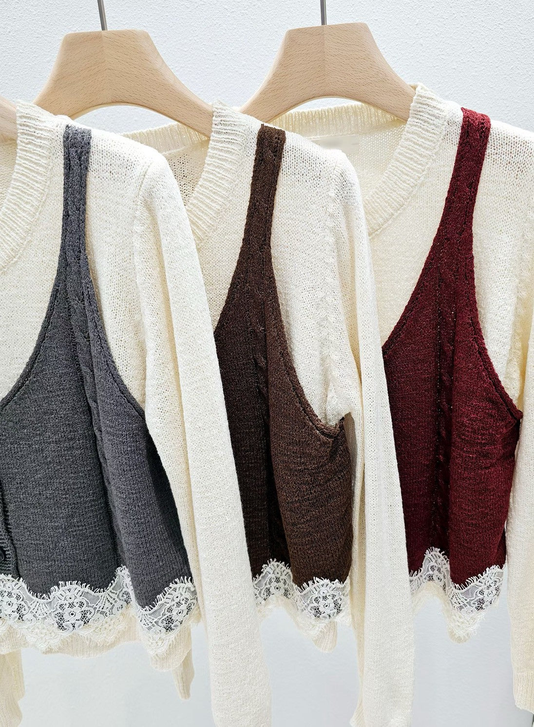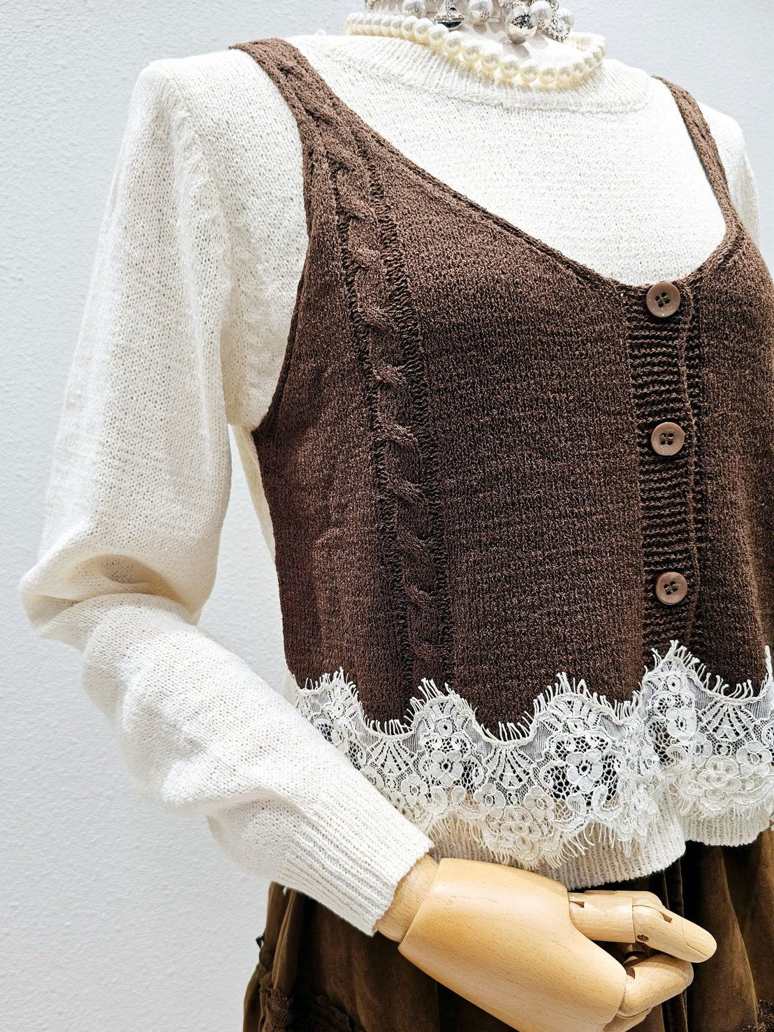 1A101 假兩件蕾絲下擺背心毛衣