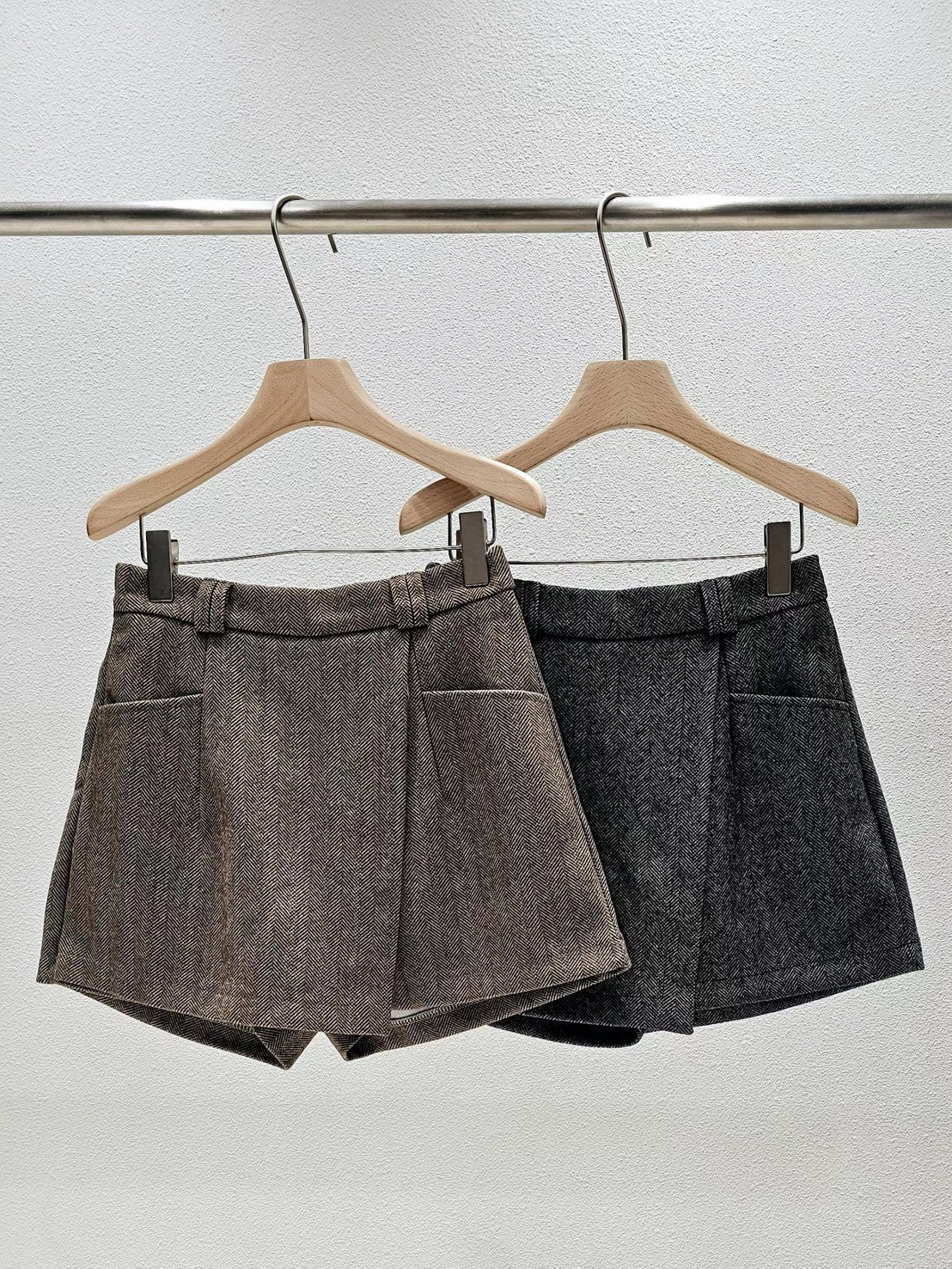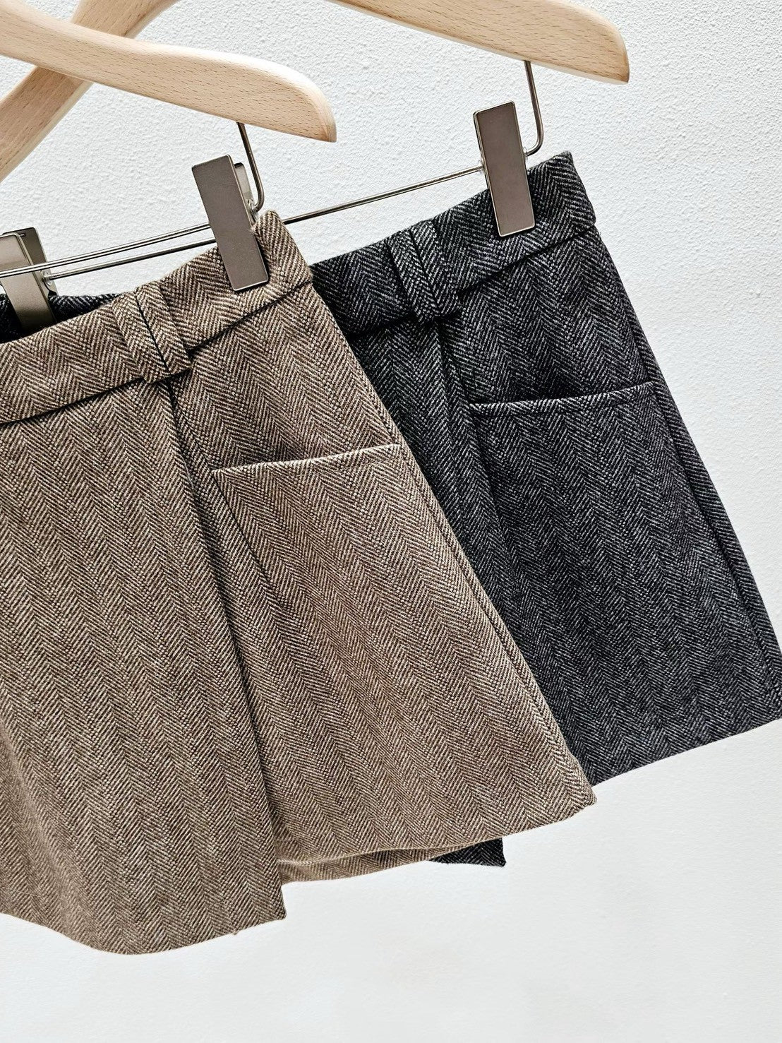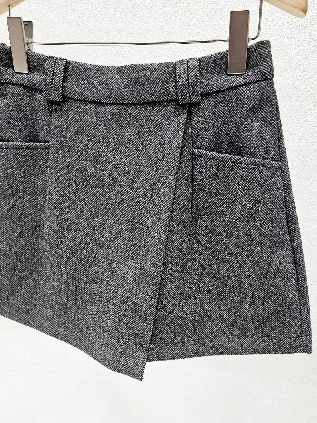 1A102 人字紋毛料短褲裙(後鬆緊腰)