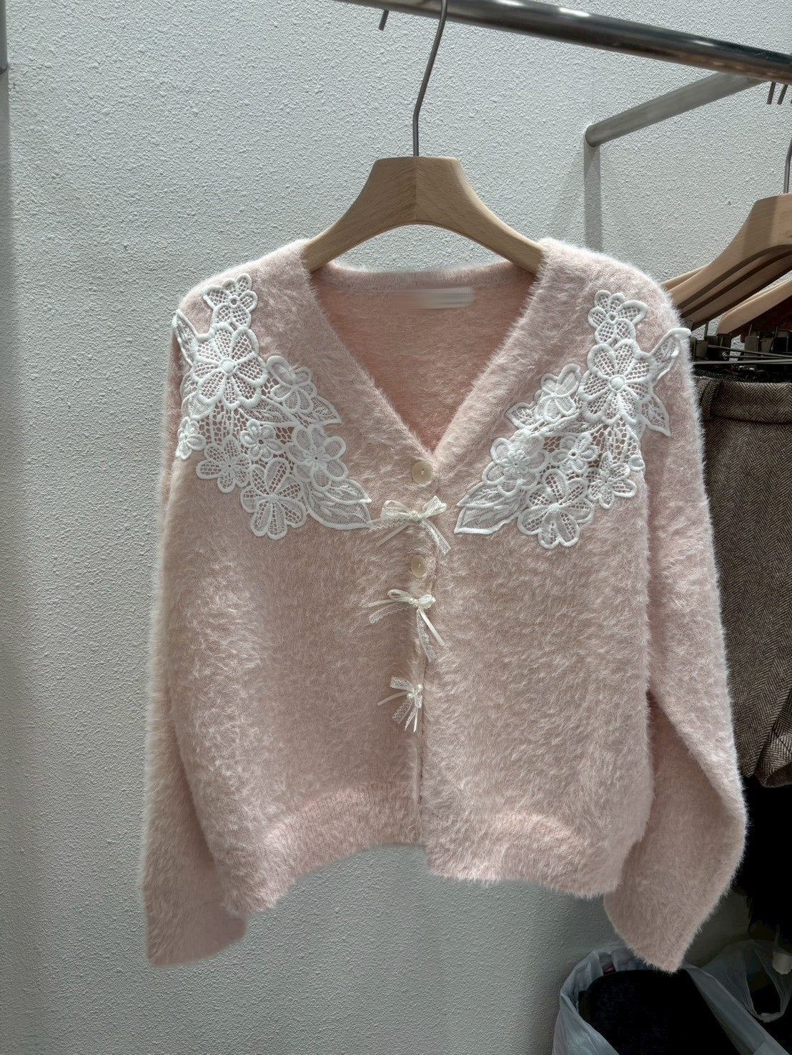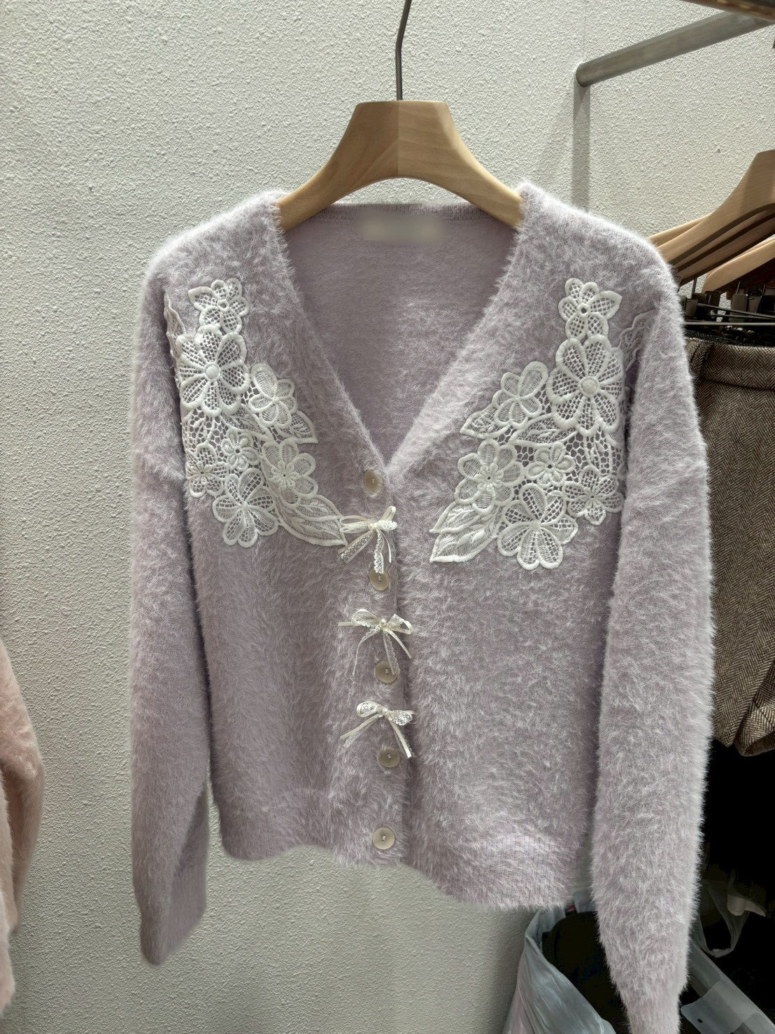 1A104 親膚毛鬚感蕾絲排釦外套