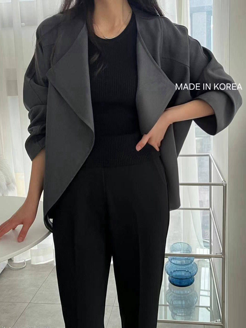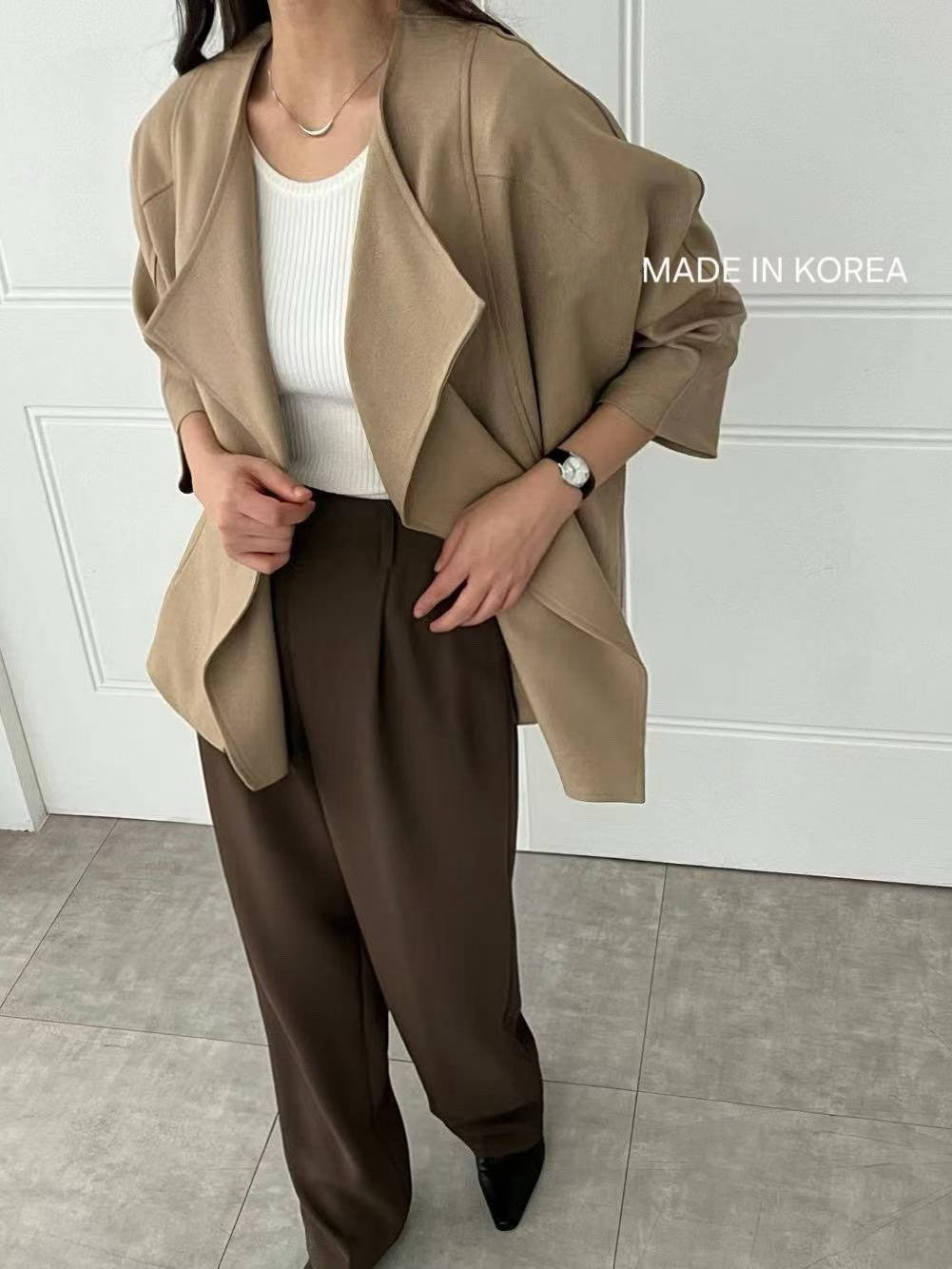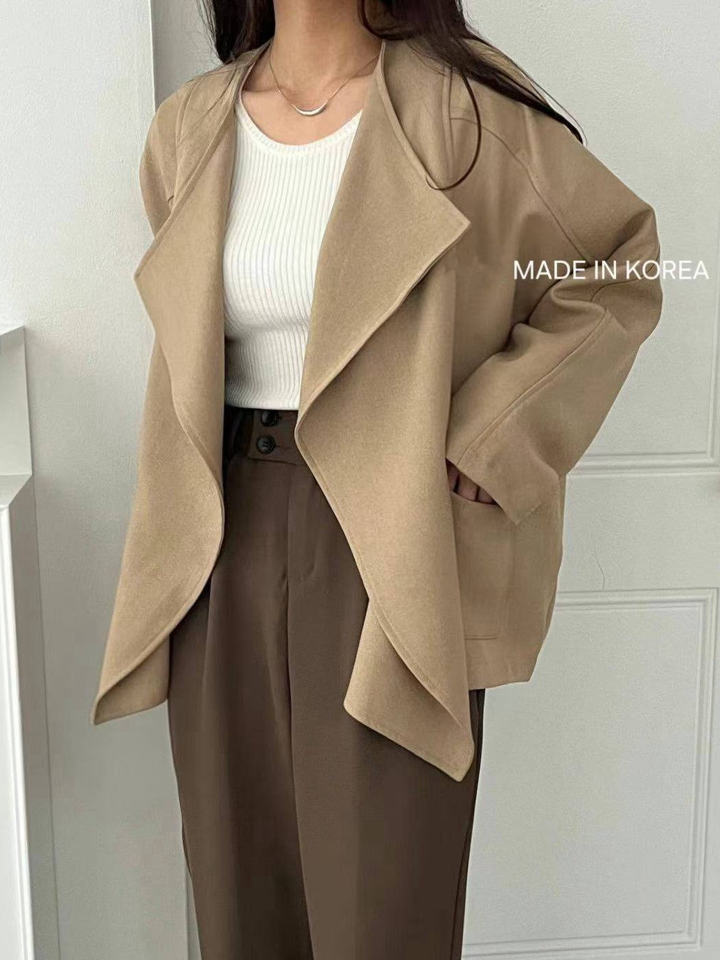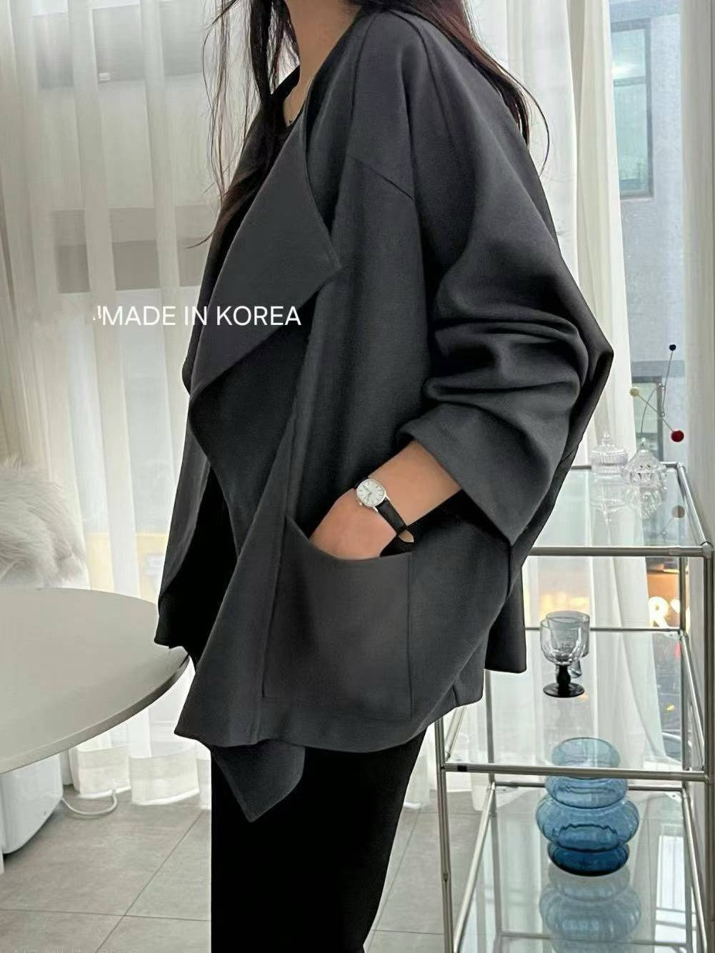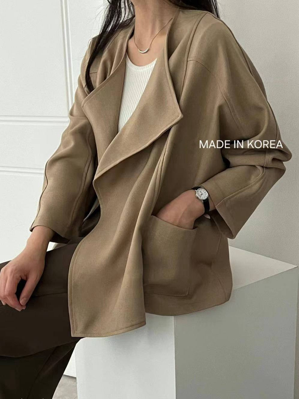 1A218 前襟大翻領斜紋布外套