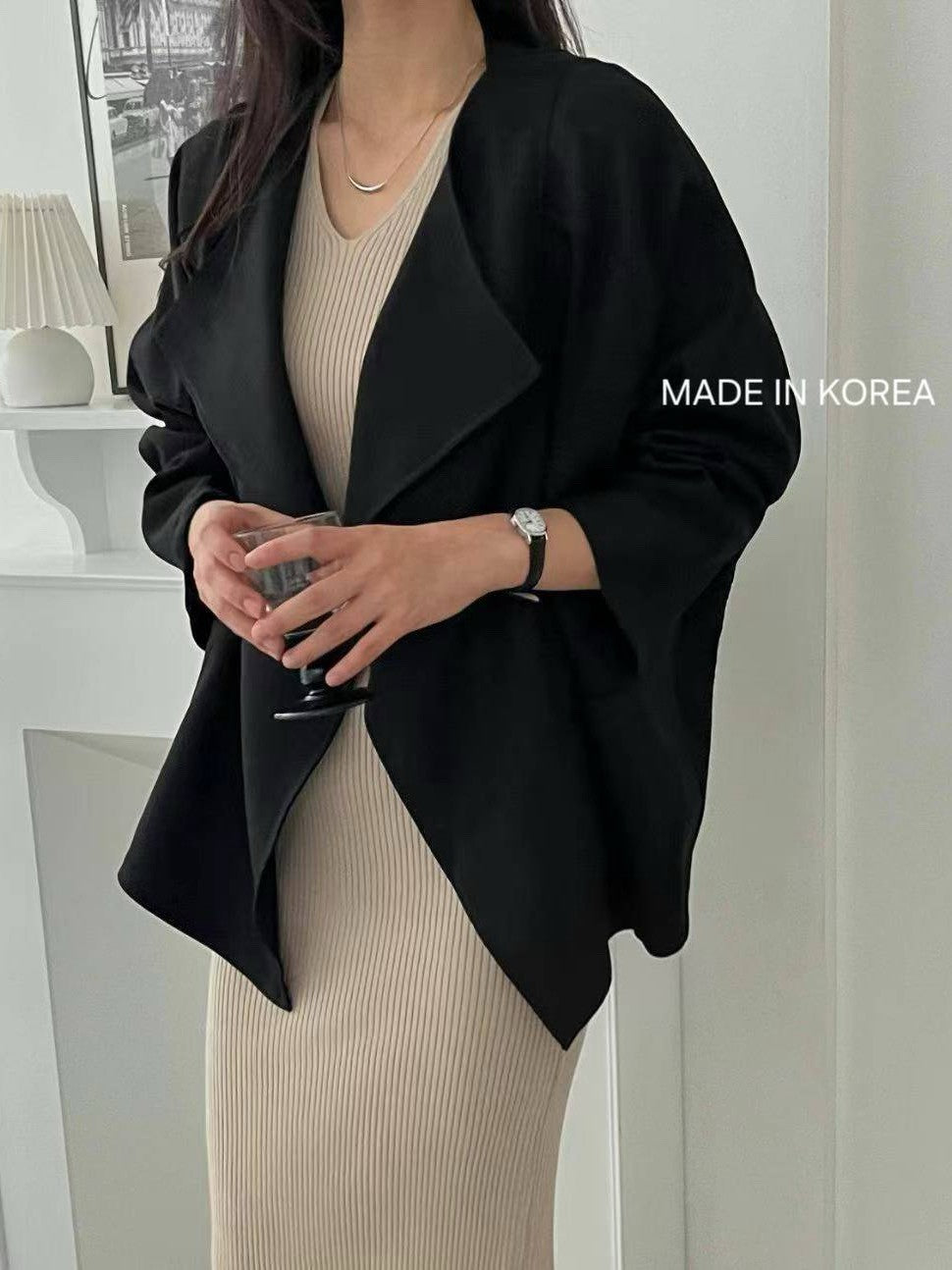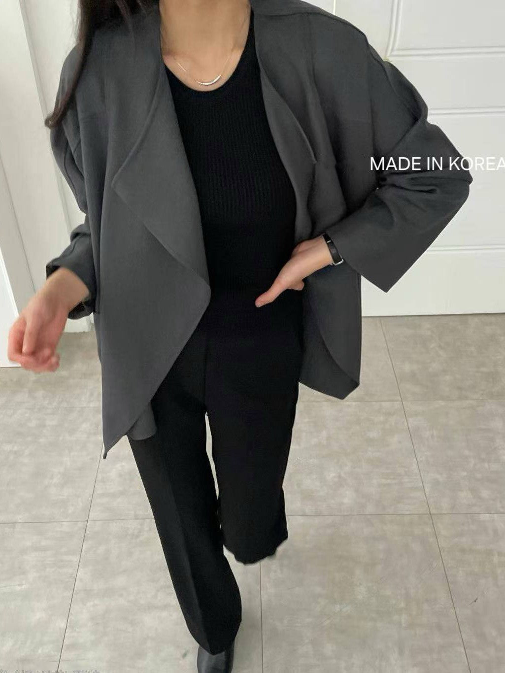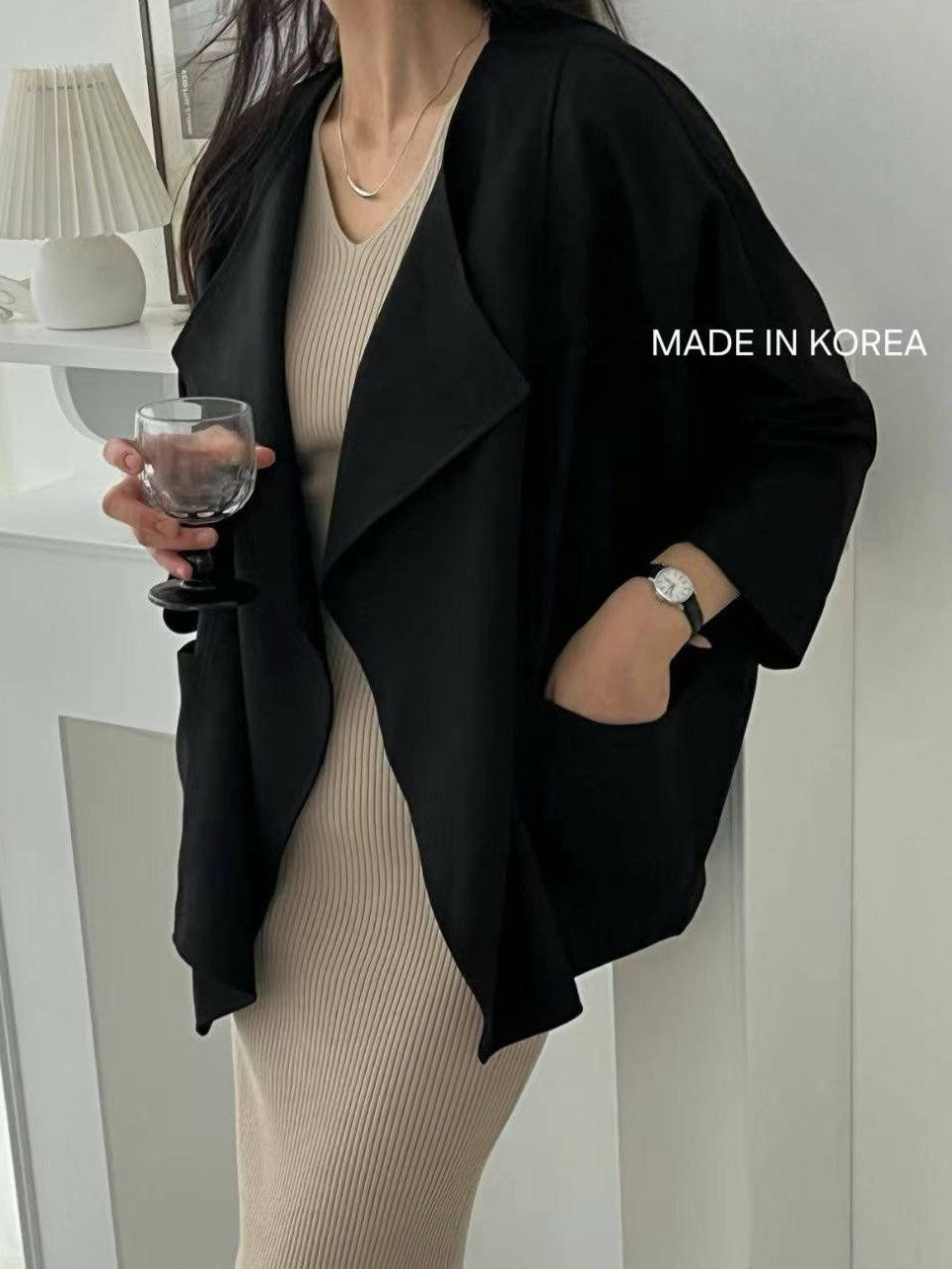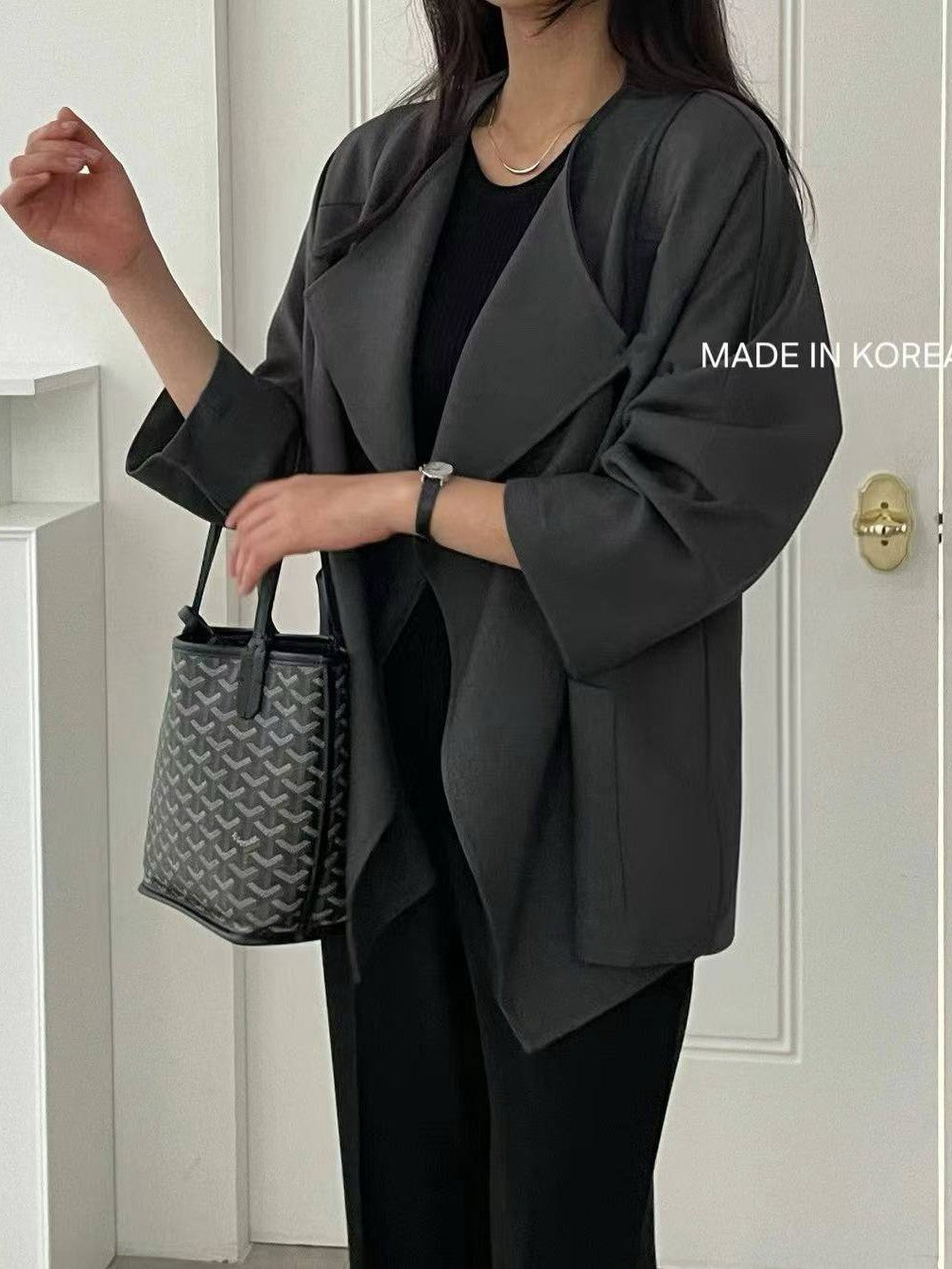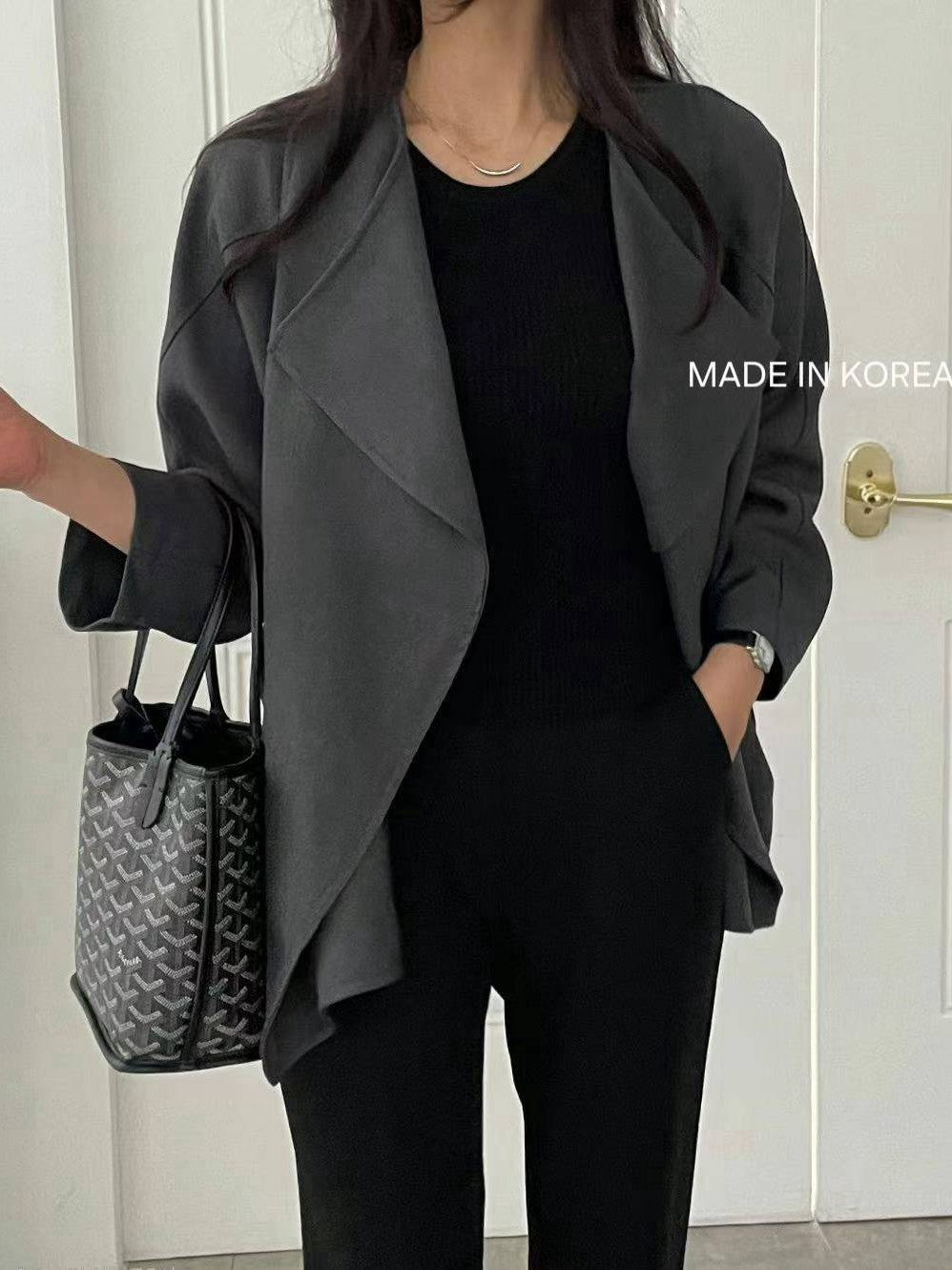 1A218 前襟大翻領斜紋布外套