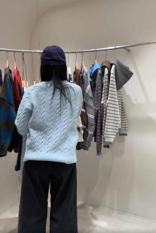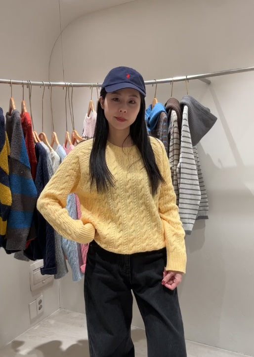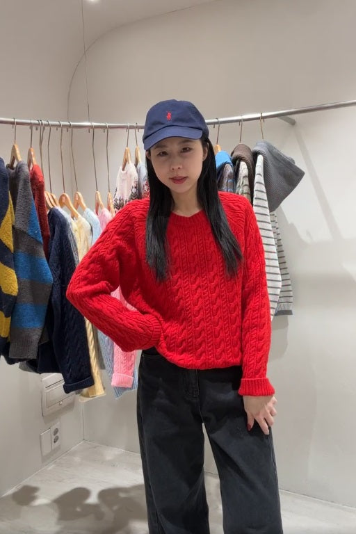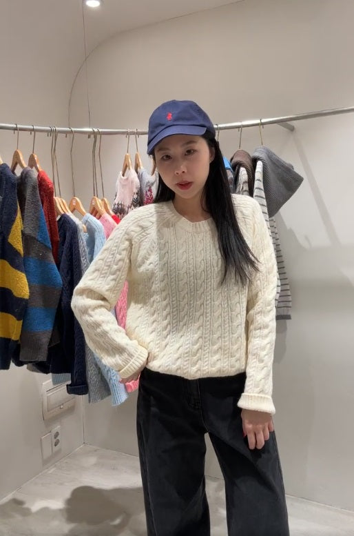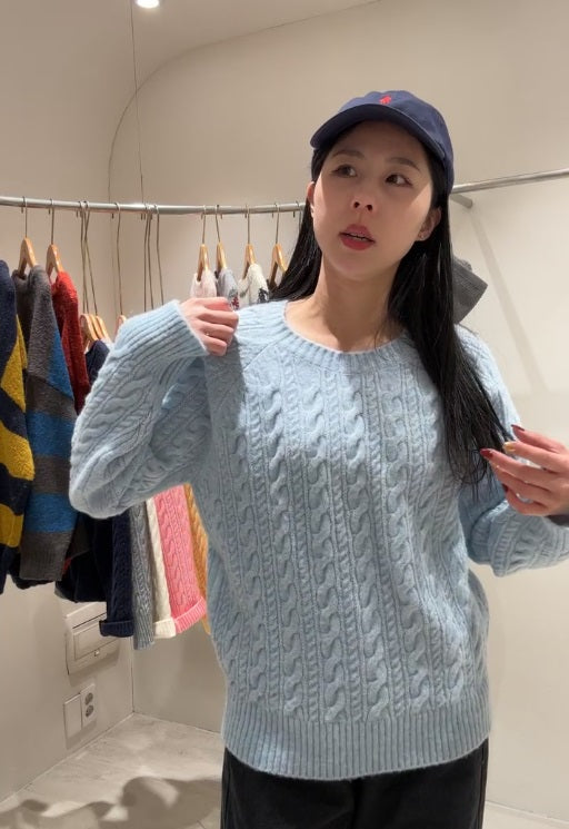 1B207 圓領麻花紋微鬆份毛衣