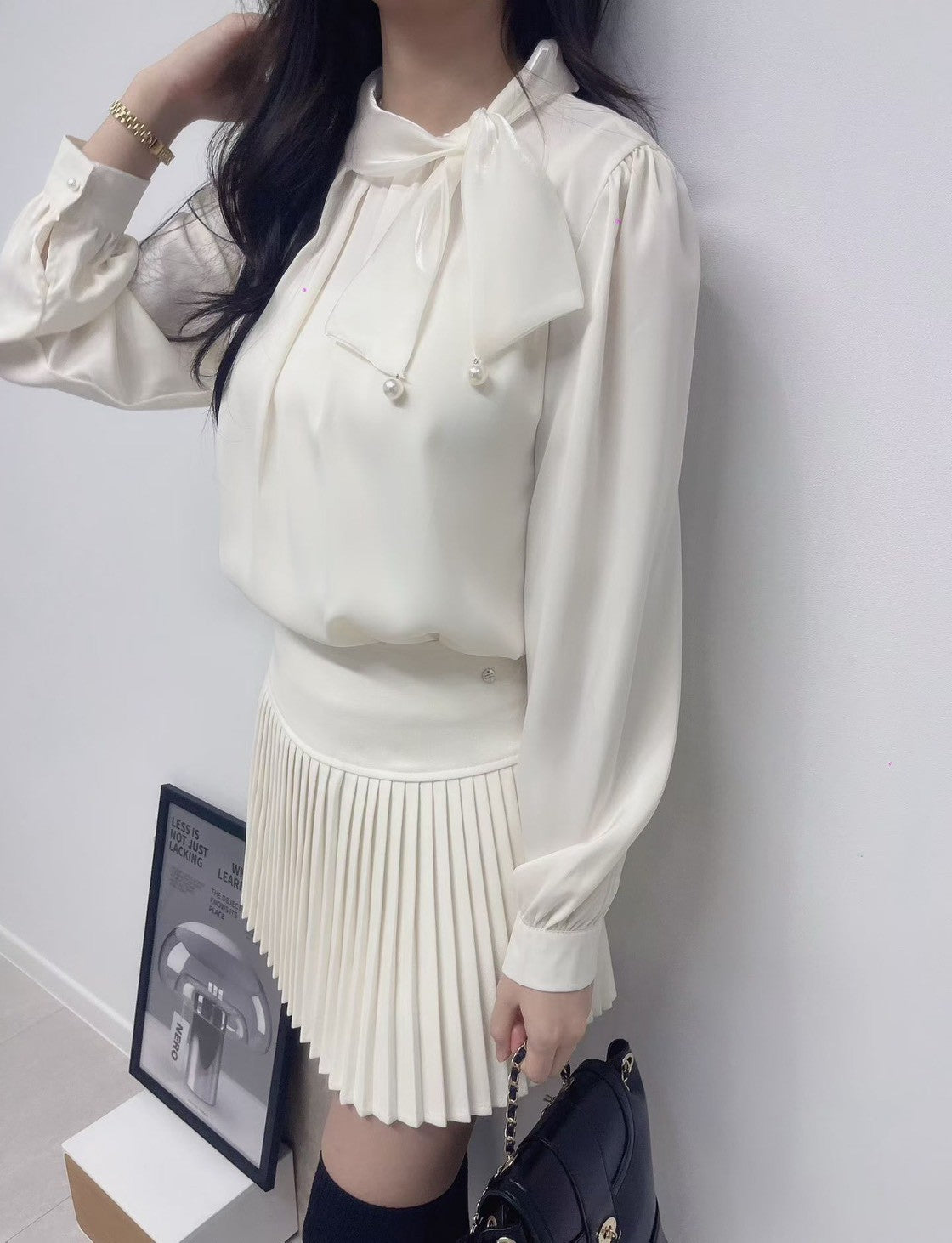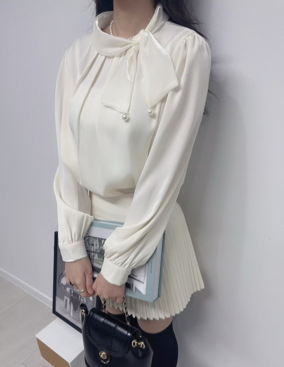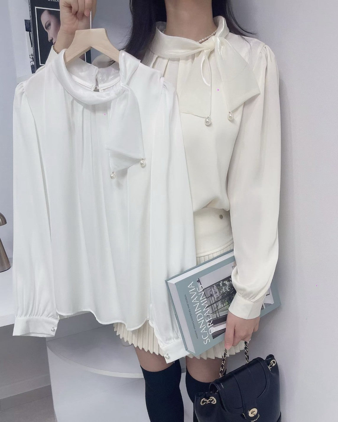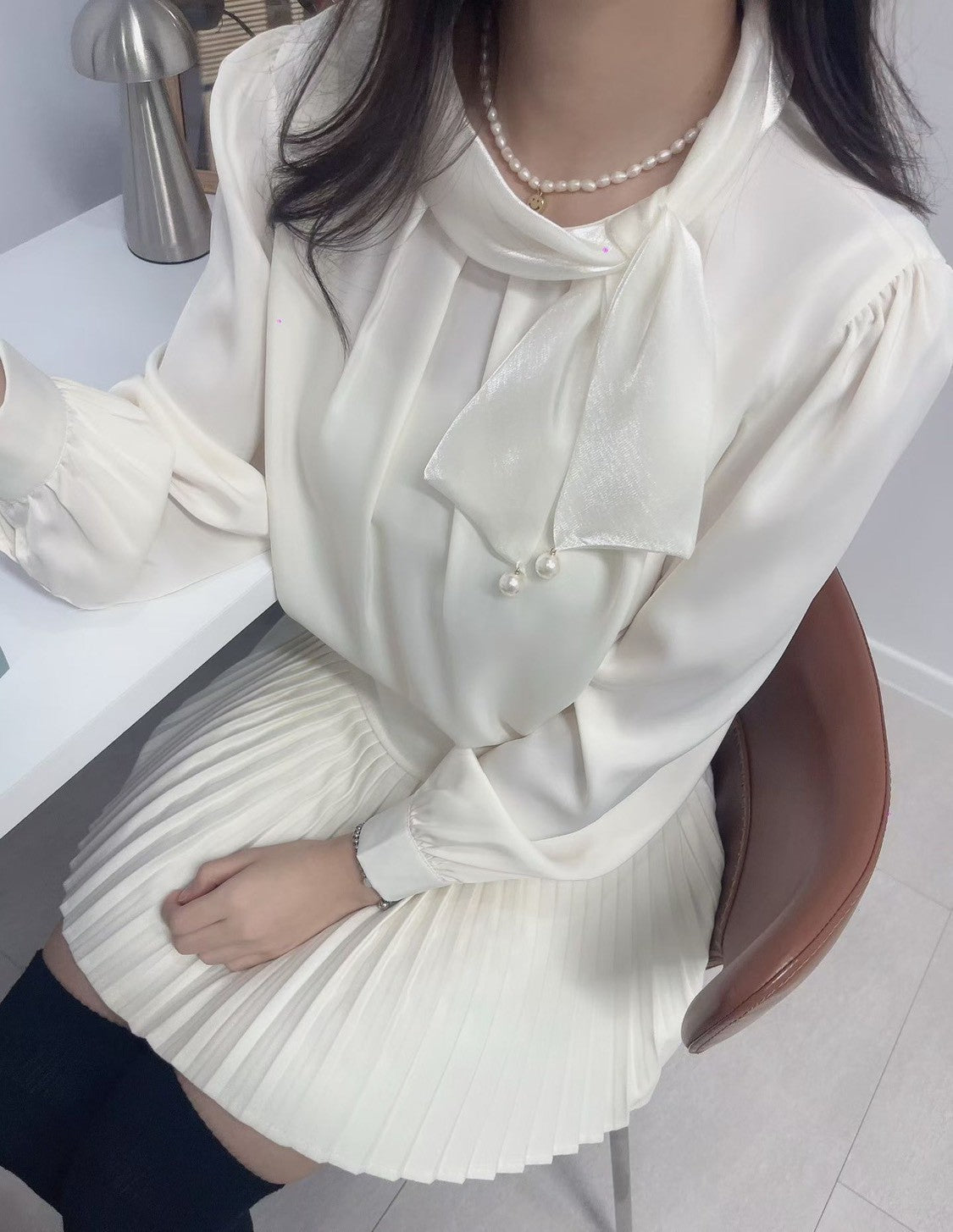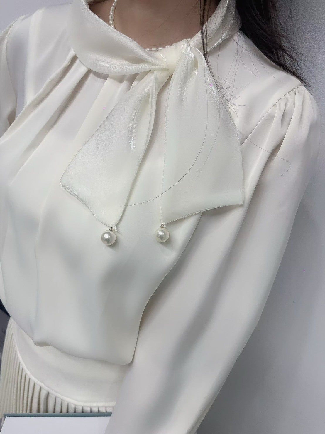 1C103 珍珠領巾珠光雪紡上衣