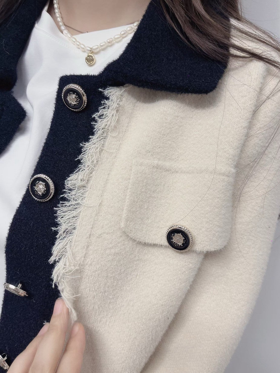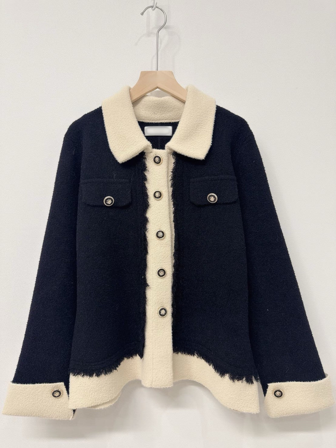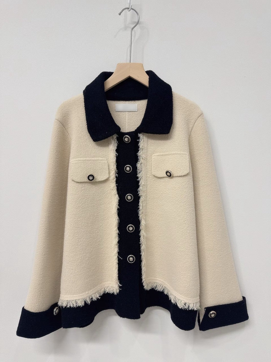 1C110 配色領抽鬚小香風針織外套