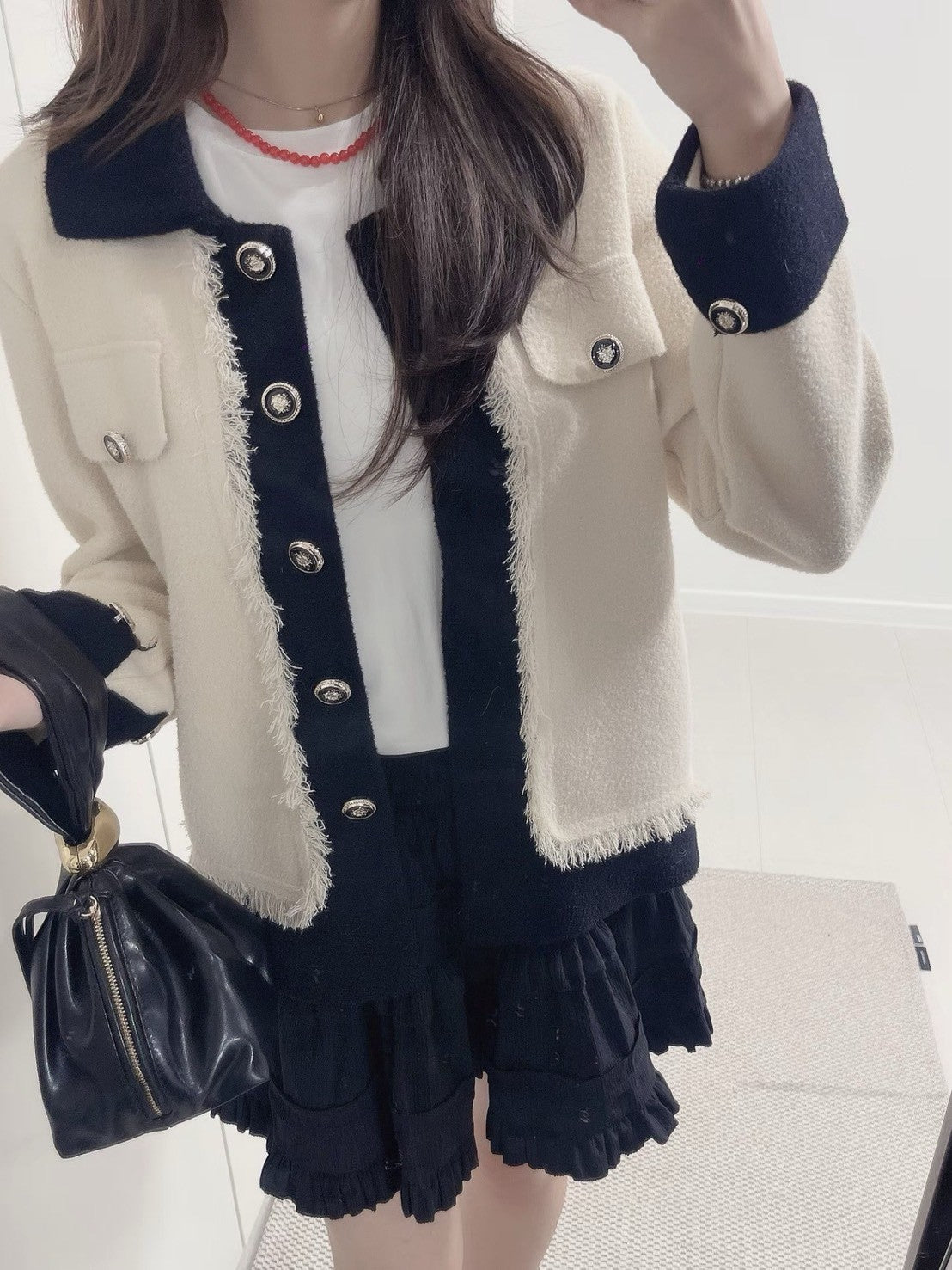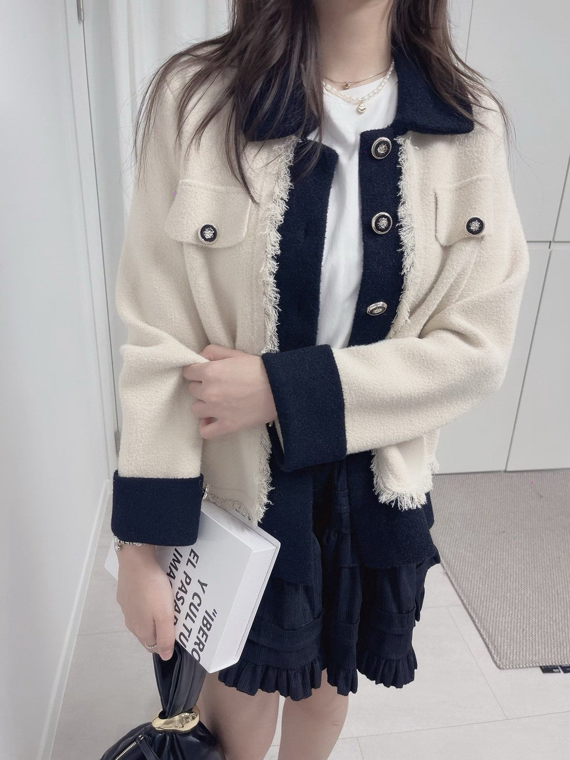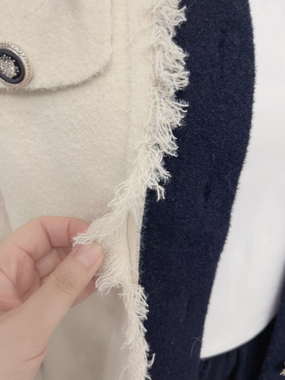 1C110 配色領抽鬚小香風針織外套