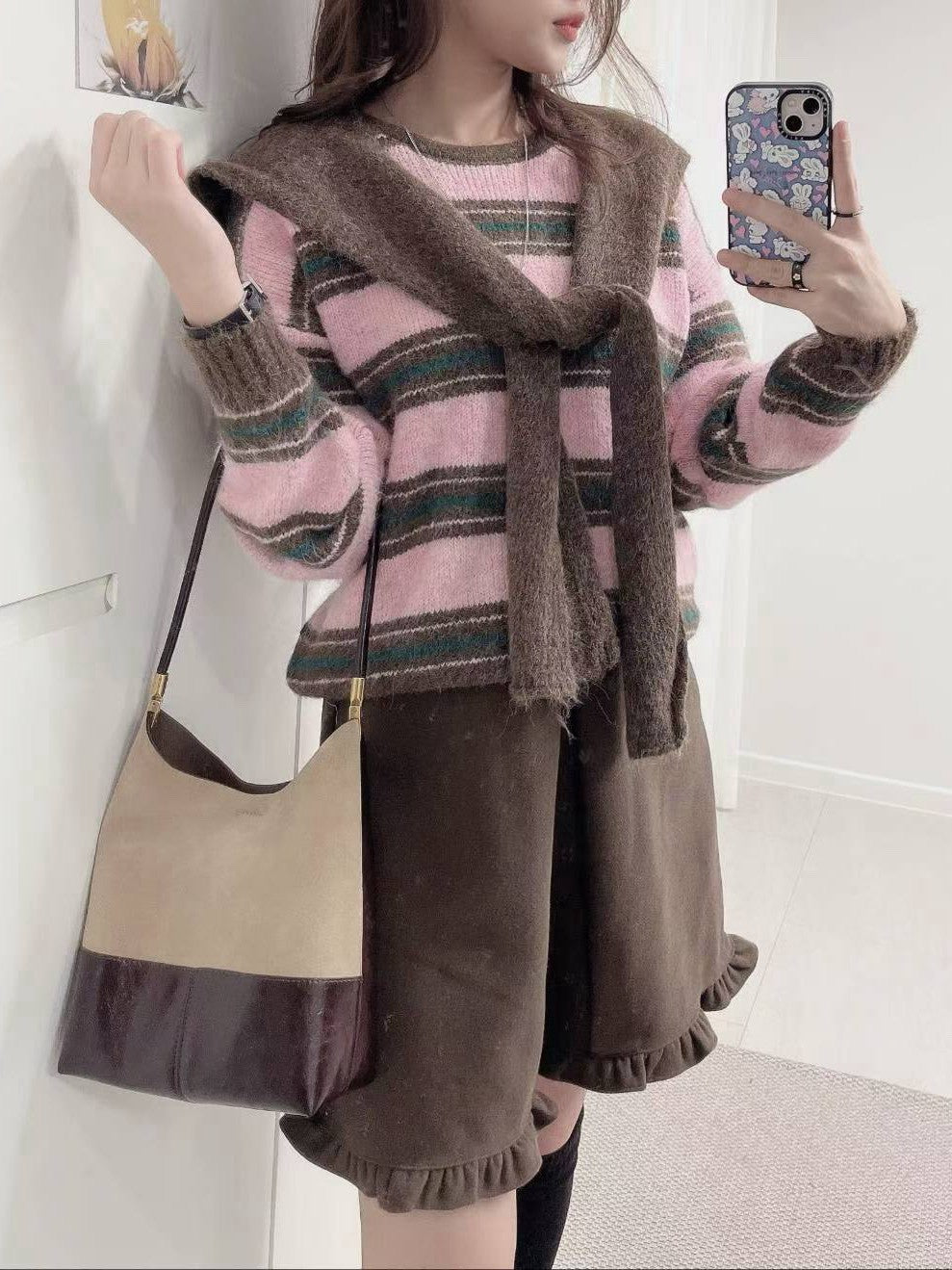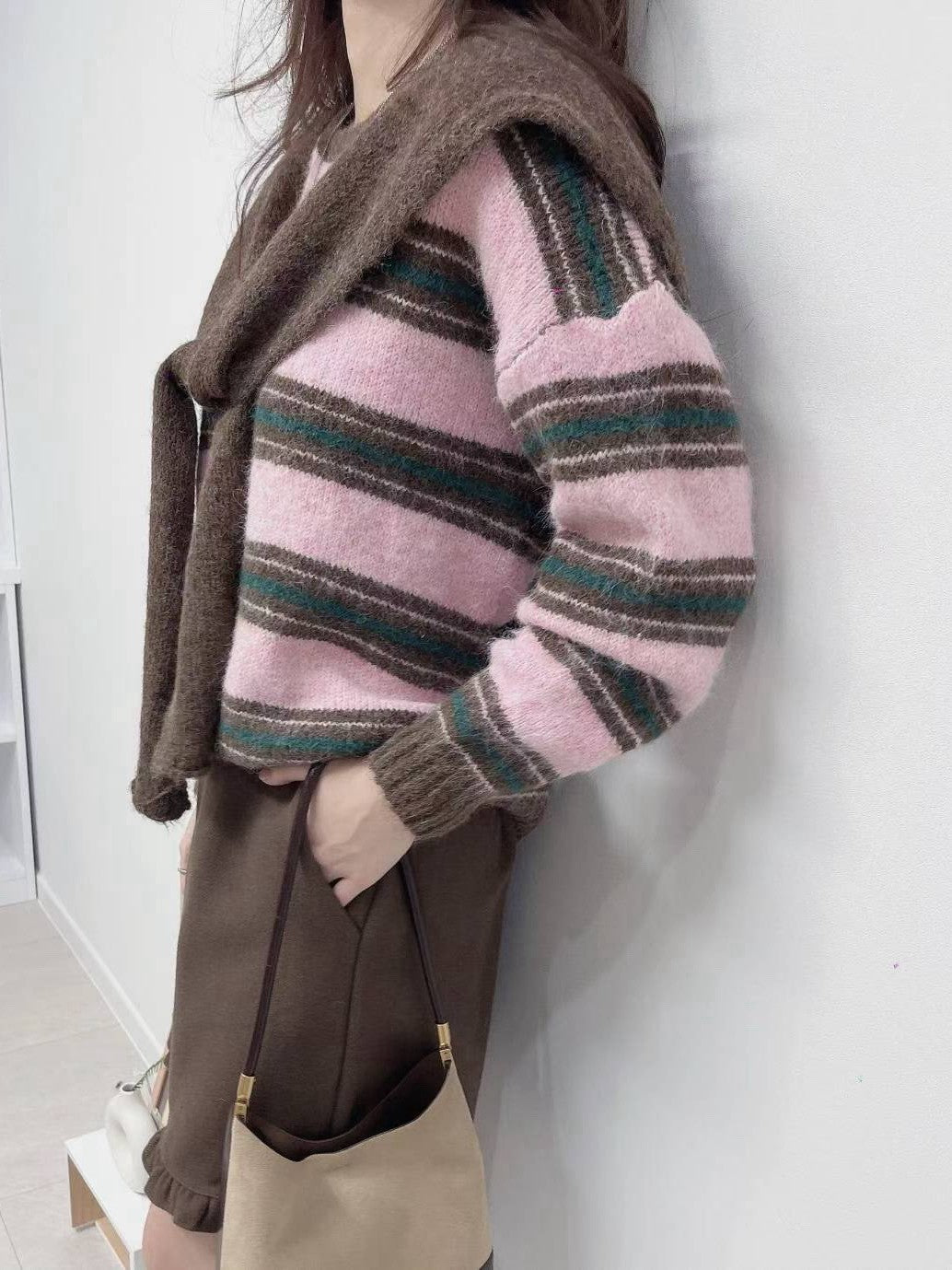 1C112 橫條毛衣+披肩