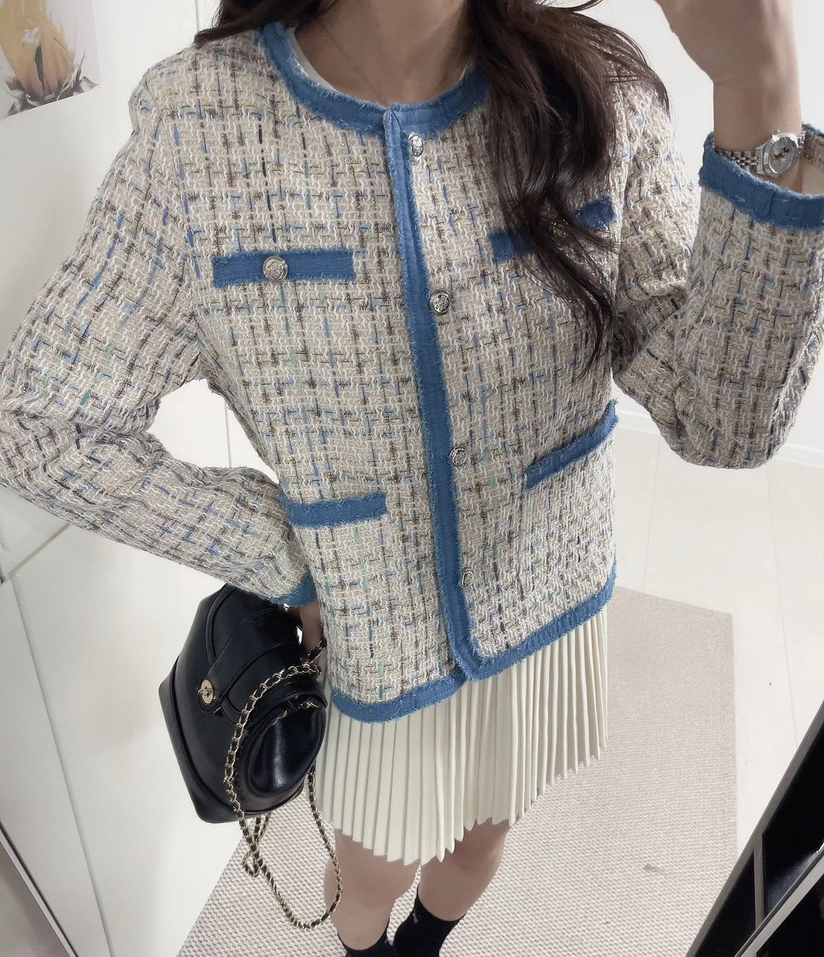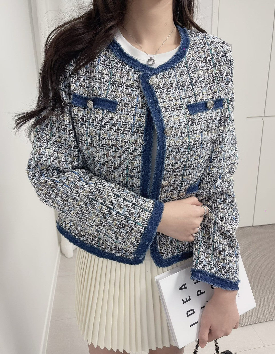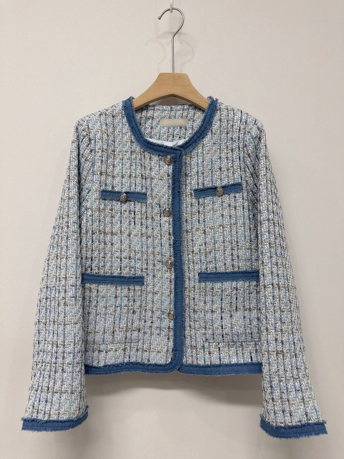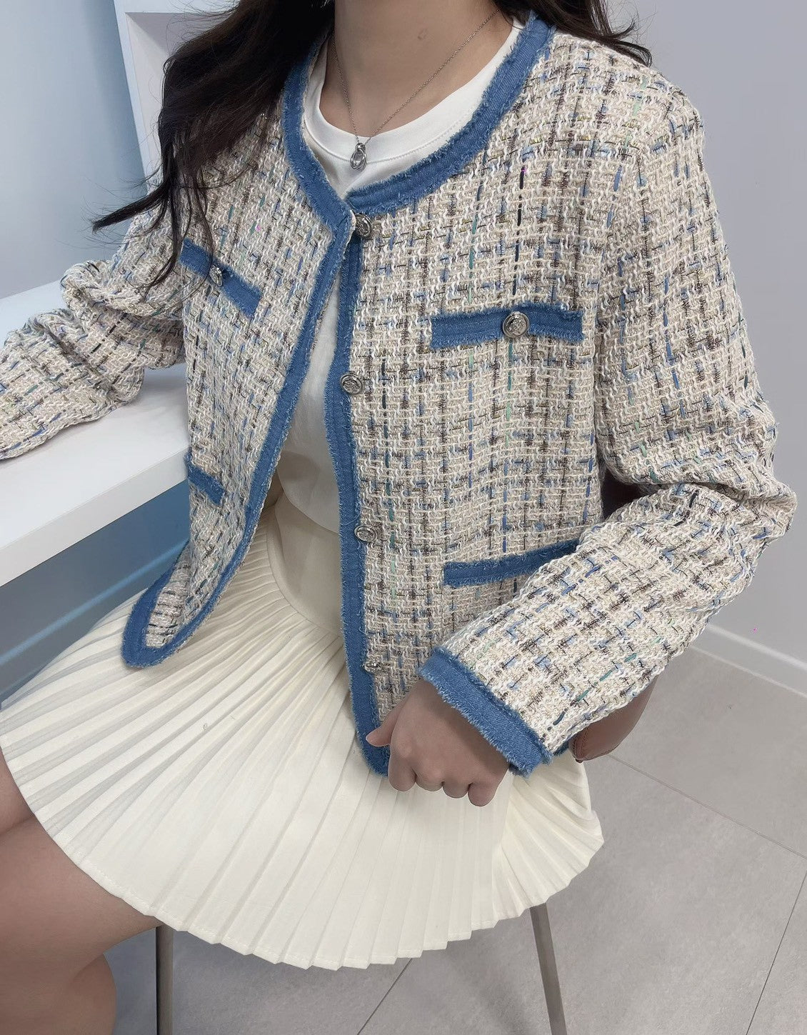 1C114 單寧邊格紋小香外套