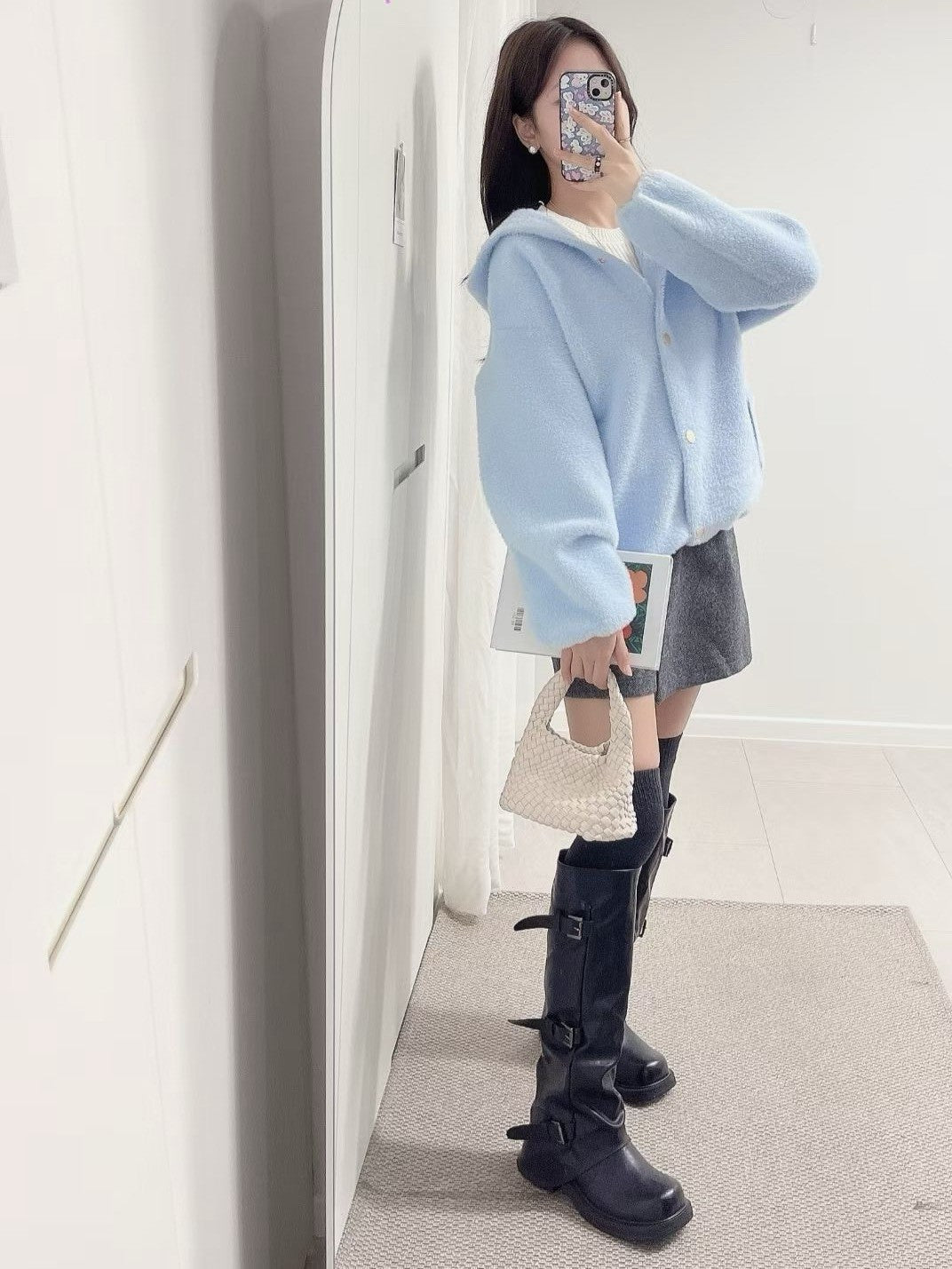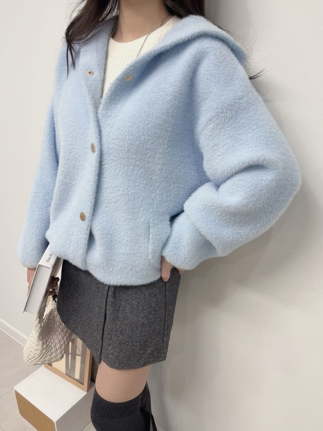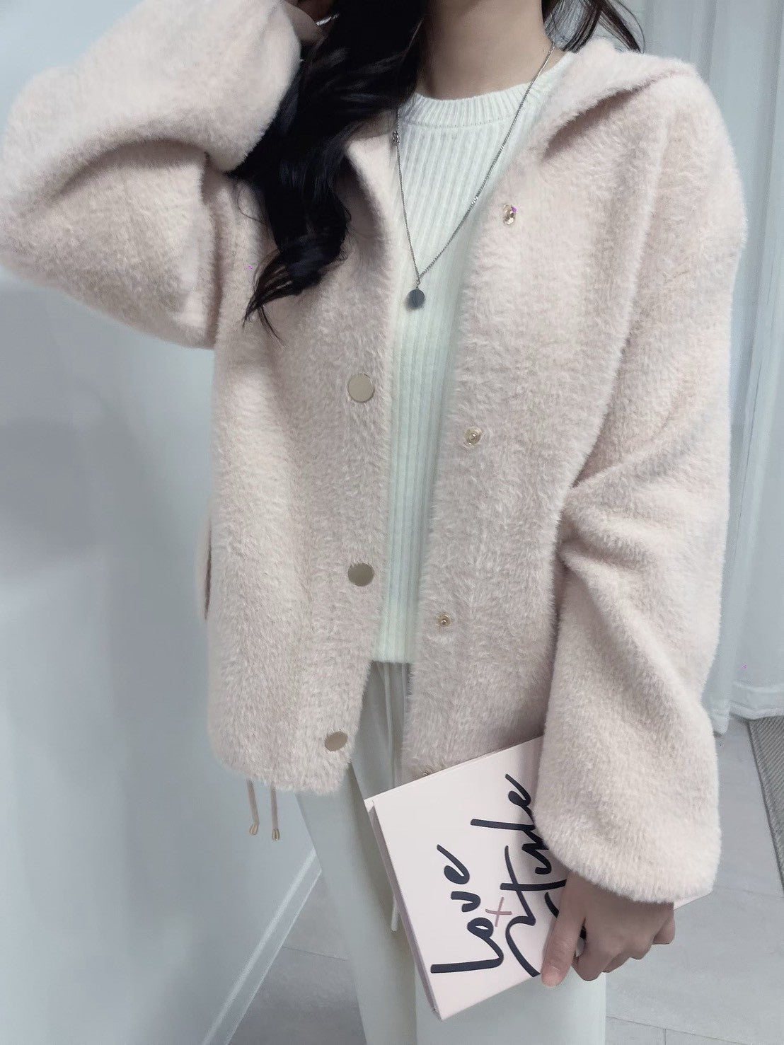 1C115 鬚感毛料針織連帽外套