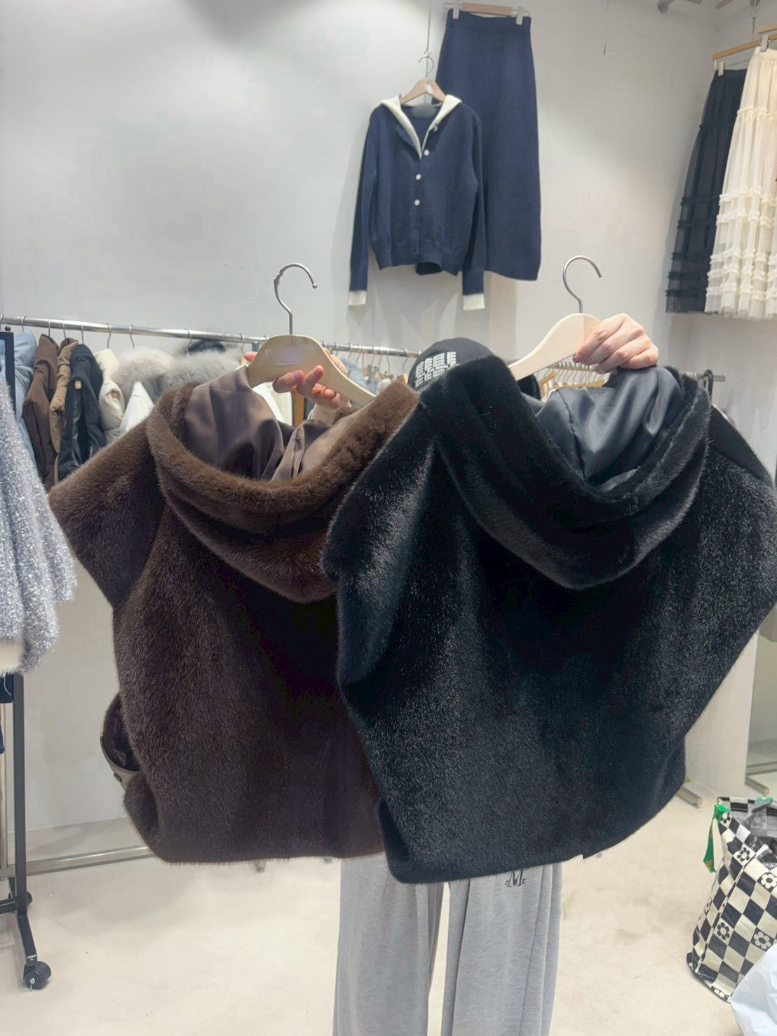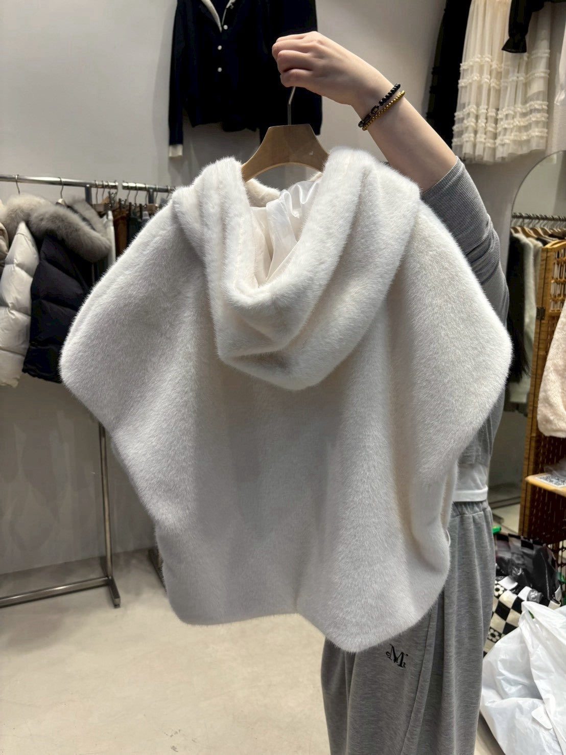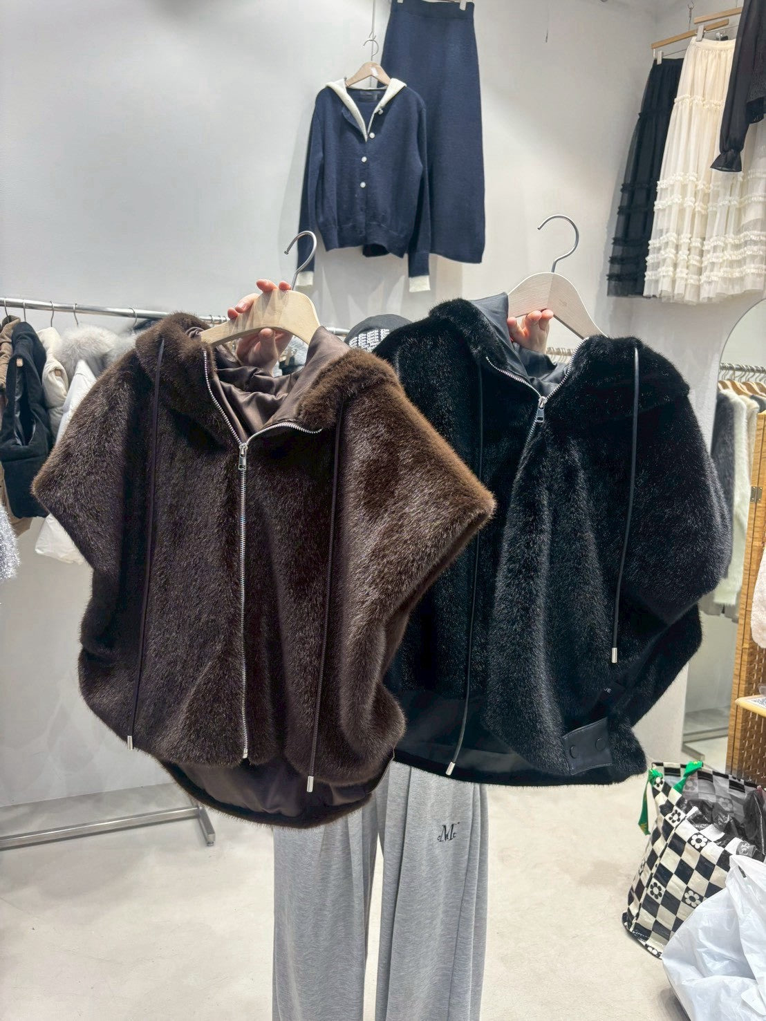 1D106 連帽短袖拉鍊皮草背心