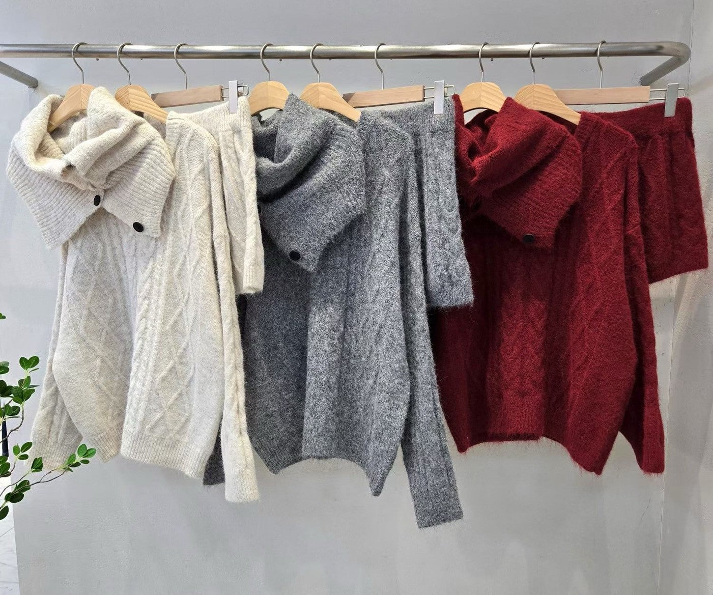1D110 麻花紋針織脖圍+毛衣+短褲三件組