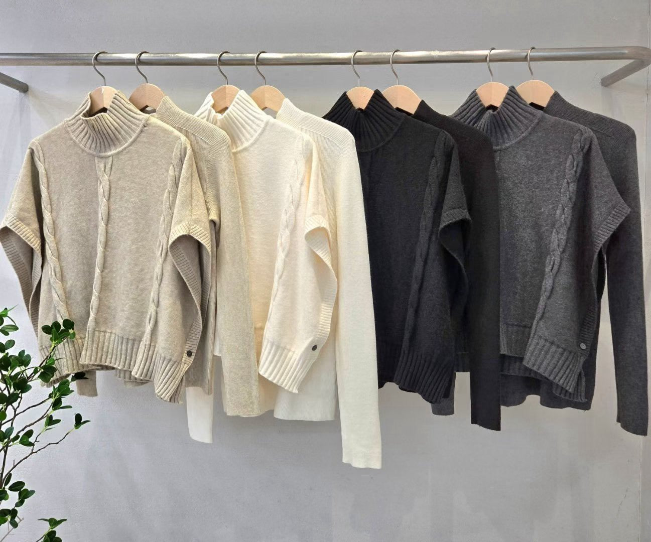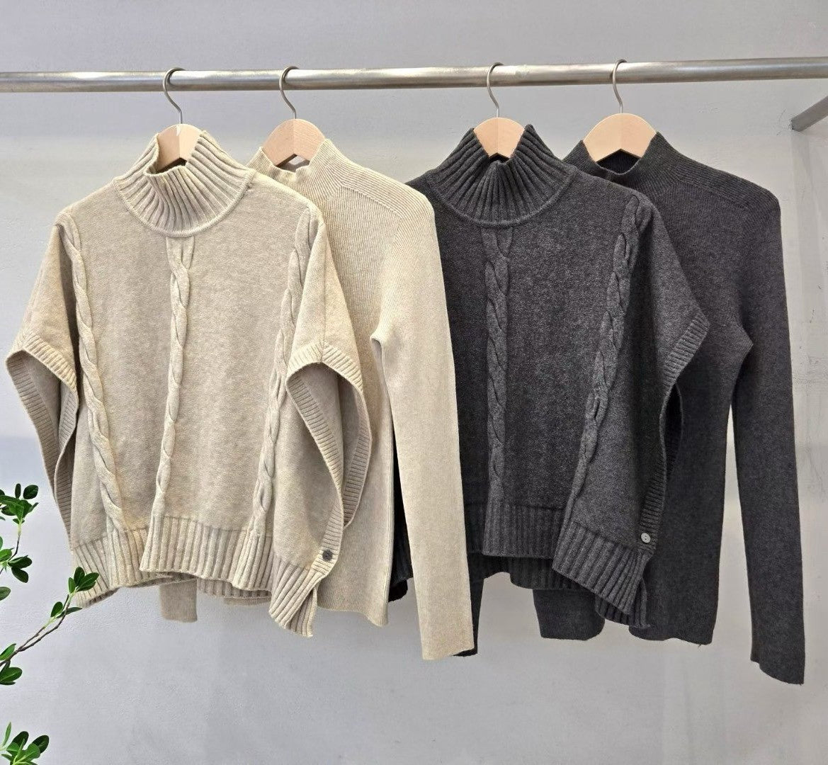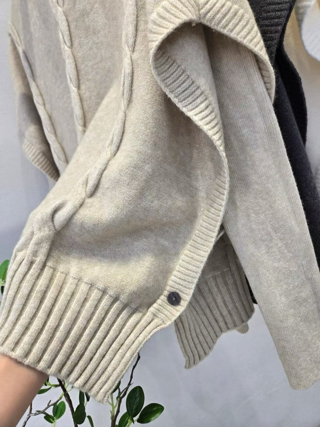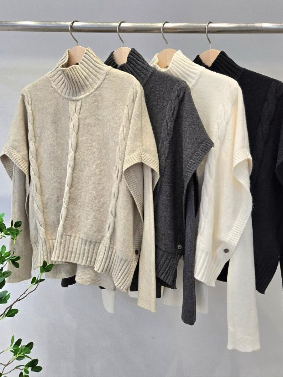 1D123 兩件式立領斗篷+合身親膚針織衫