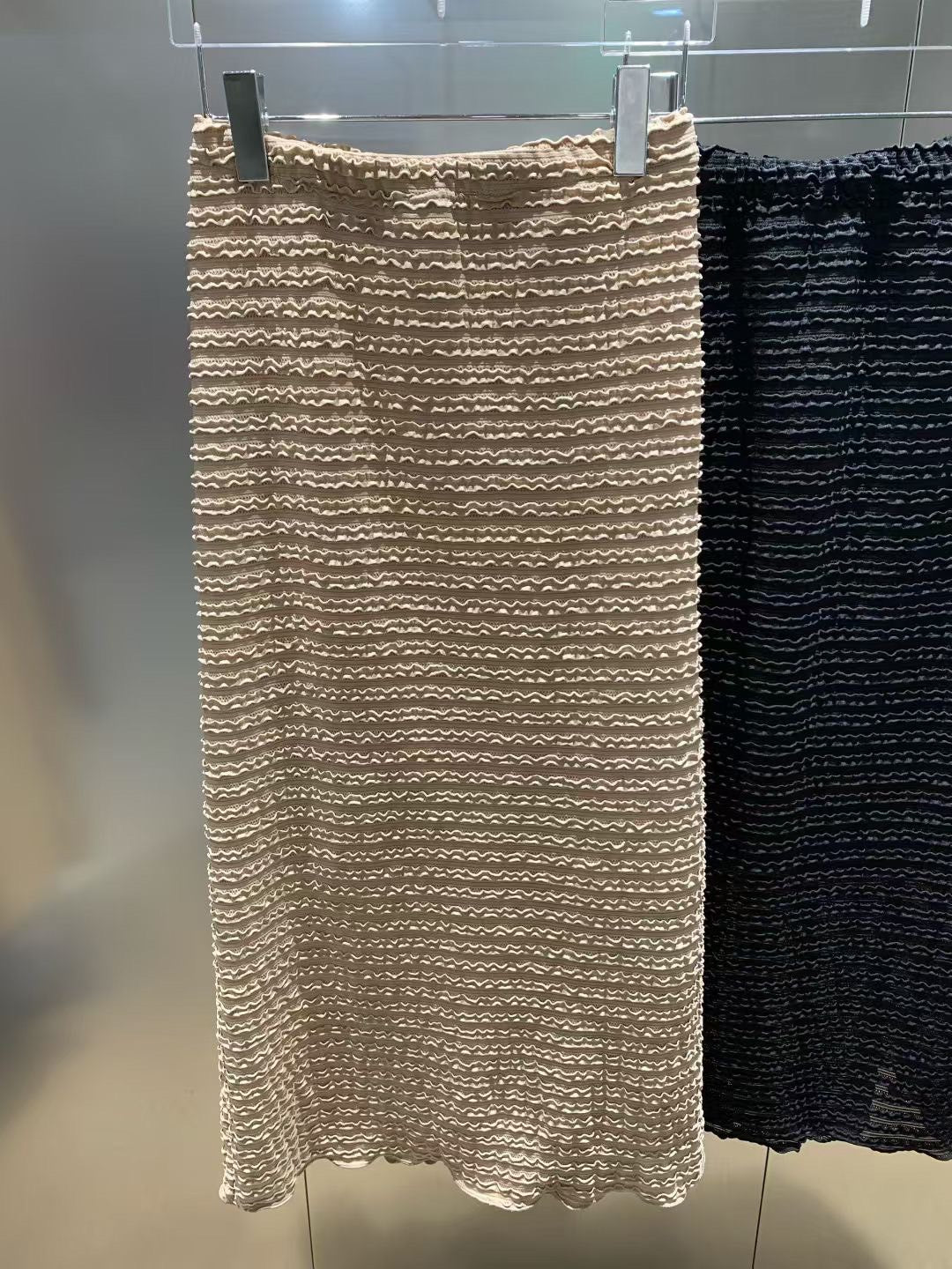 9C209 鬆緊腰彈性荷葉邊面料長裙