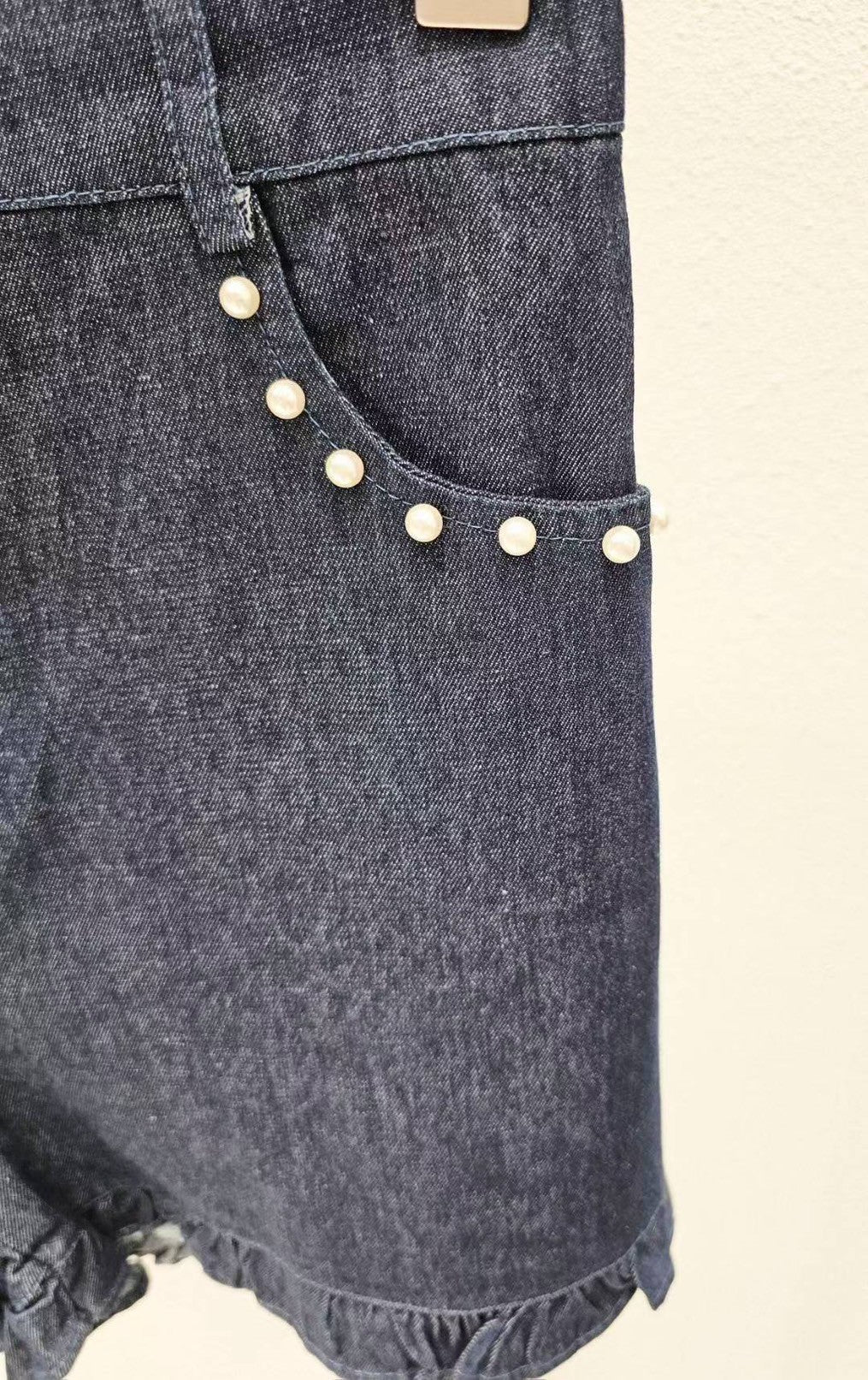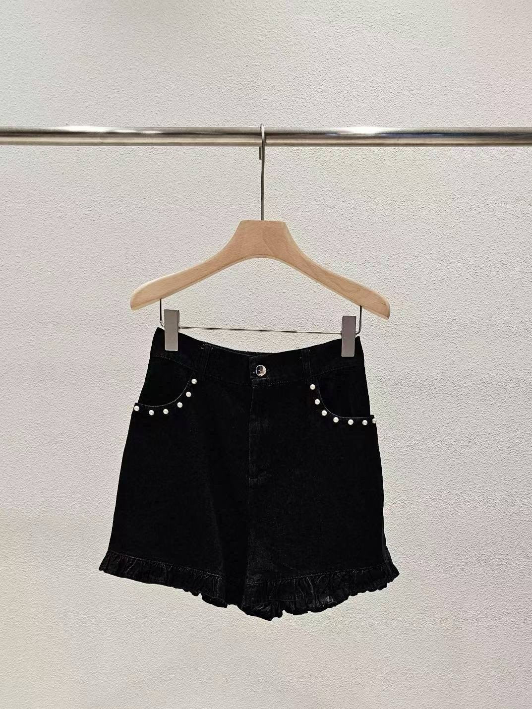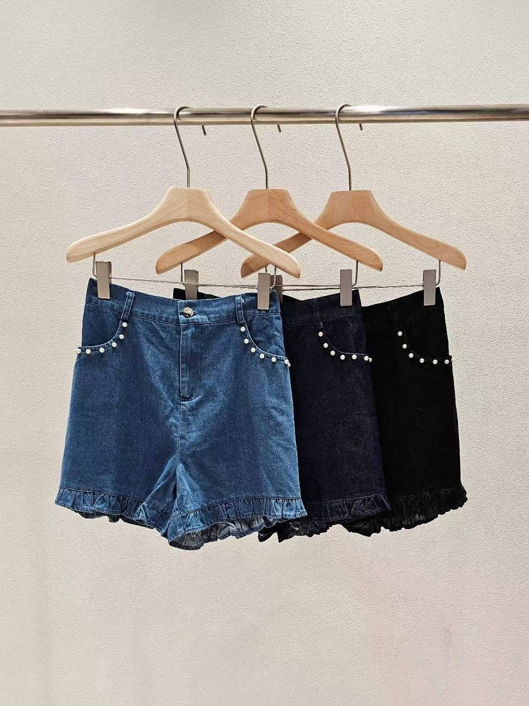 9D101 珍珠口袋荷葉邊短褲(後腰鬆緊)