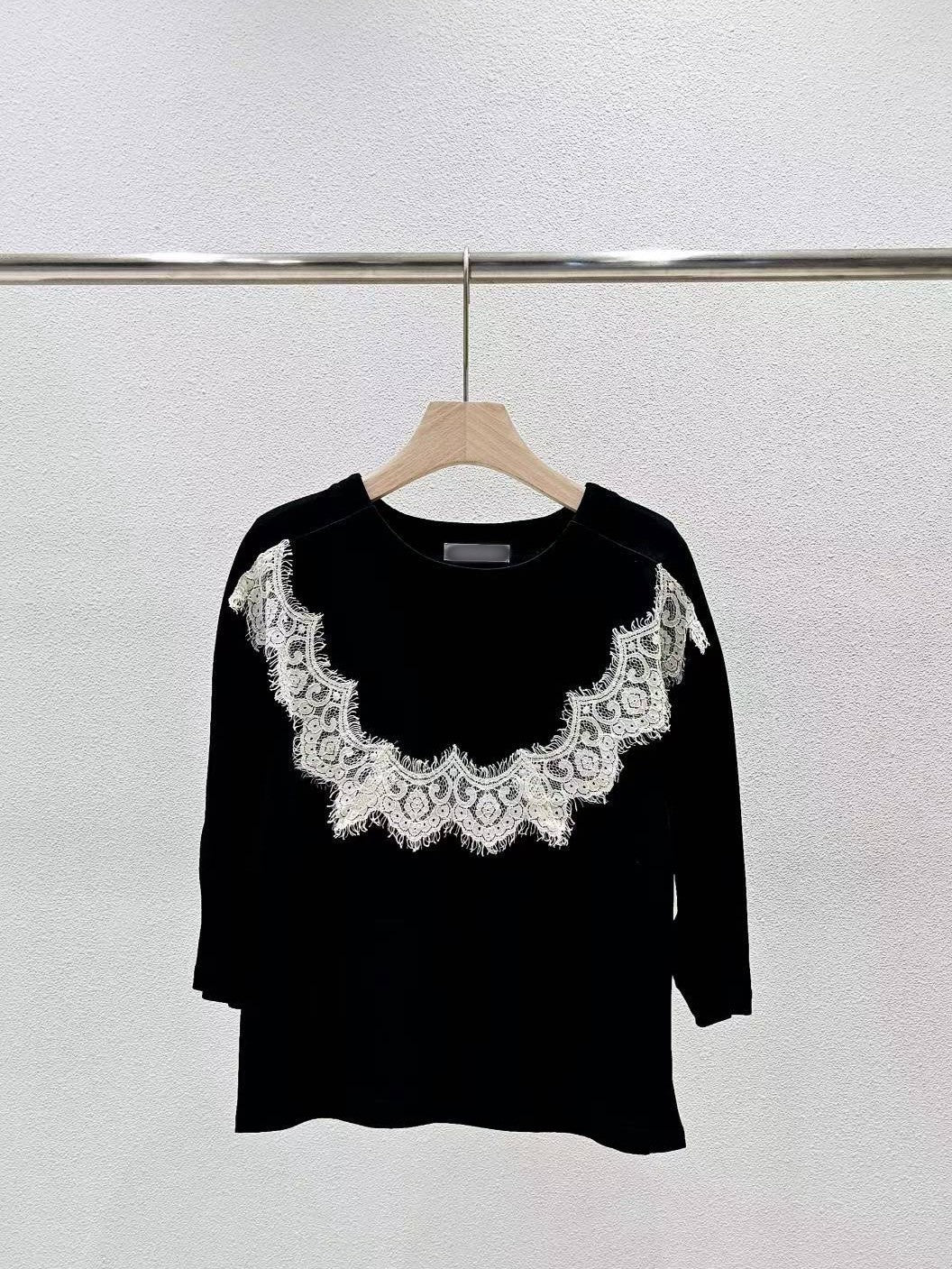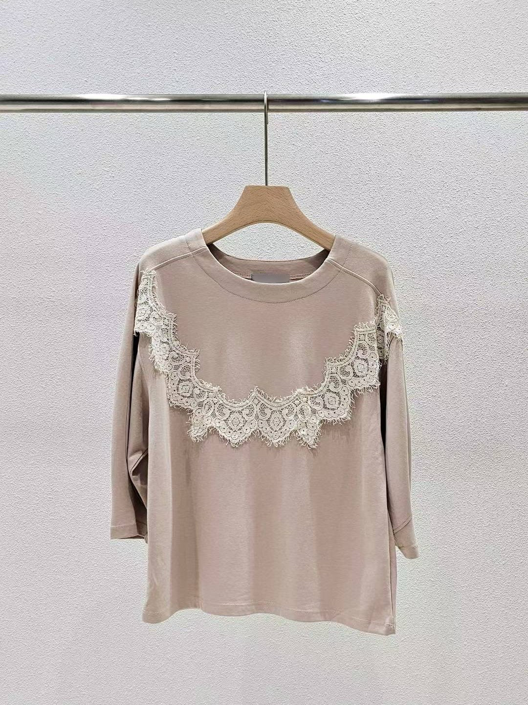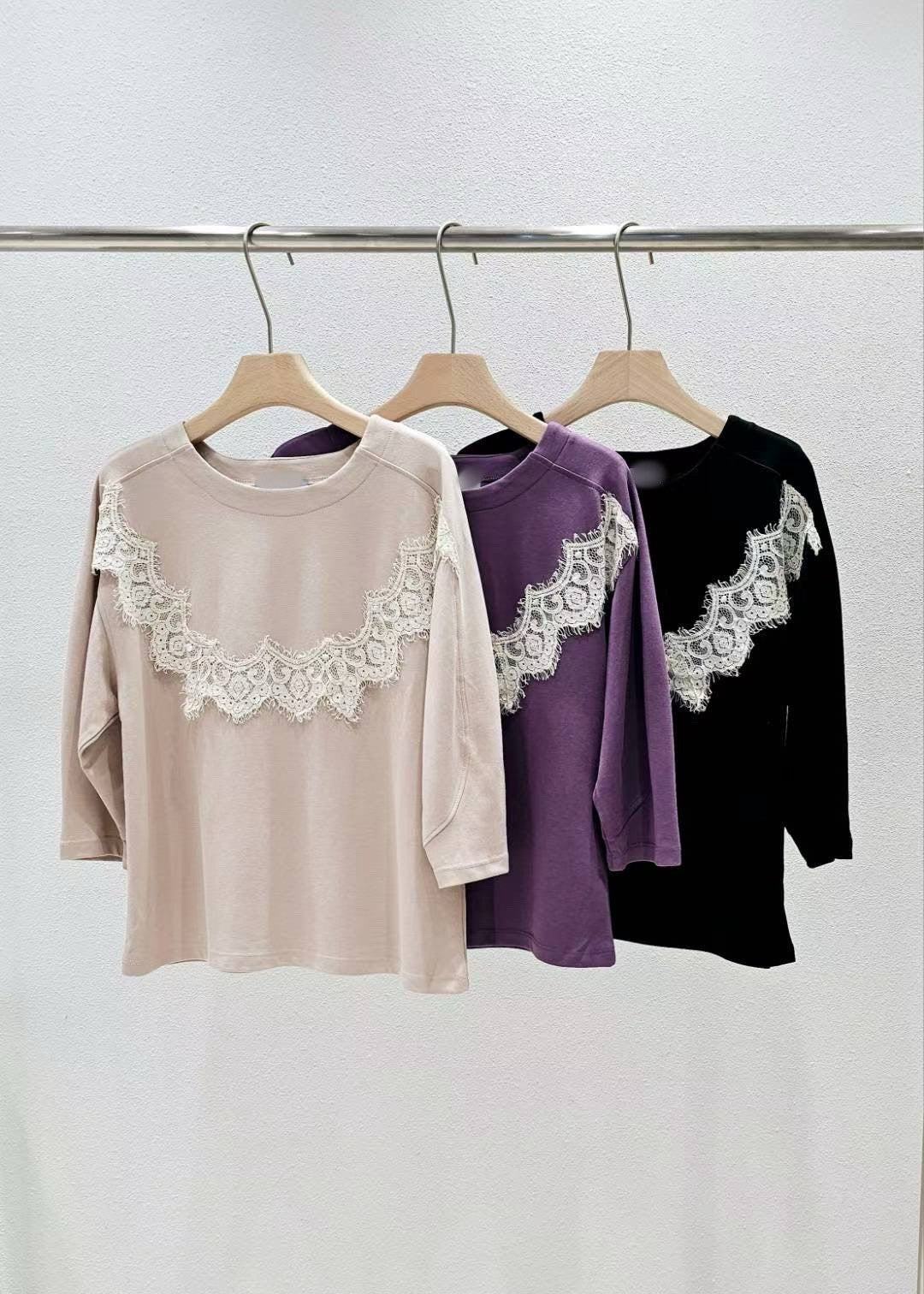 9D104 圓弧蕾絲滑面棉上衣