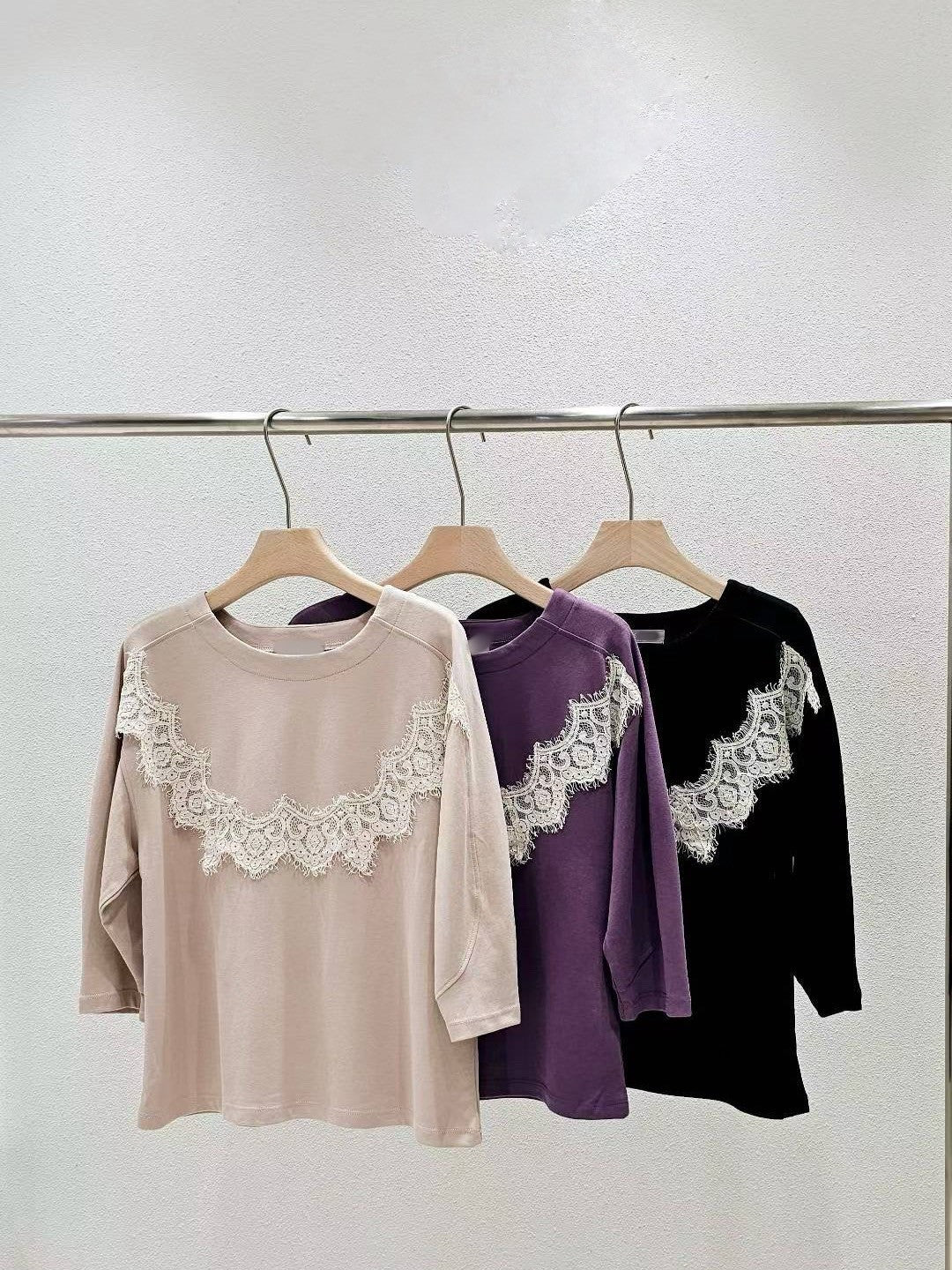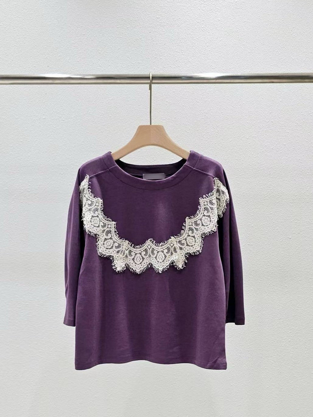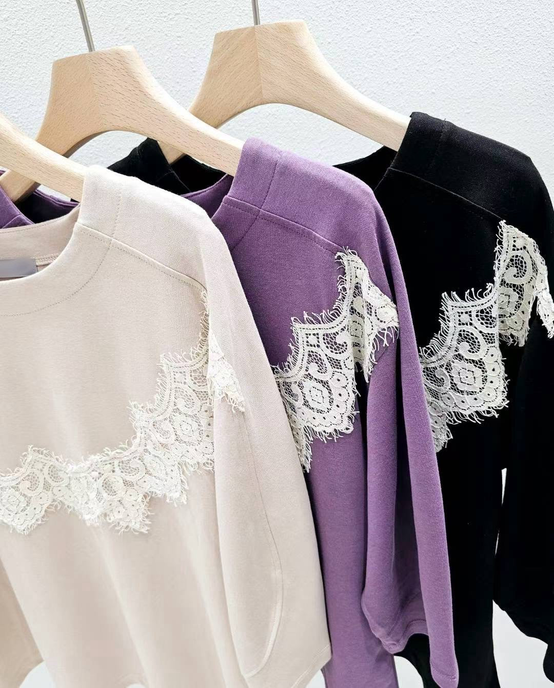 9D104 圓弧蕾絲滑面棉上衣